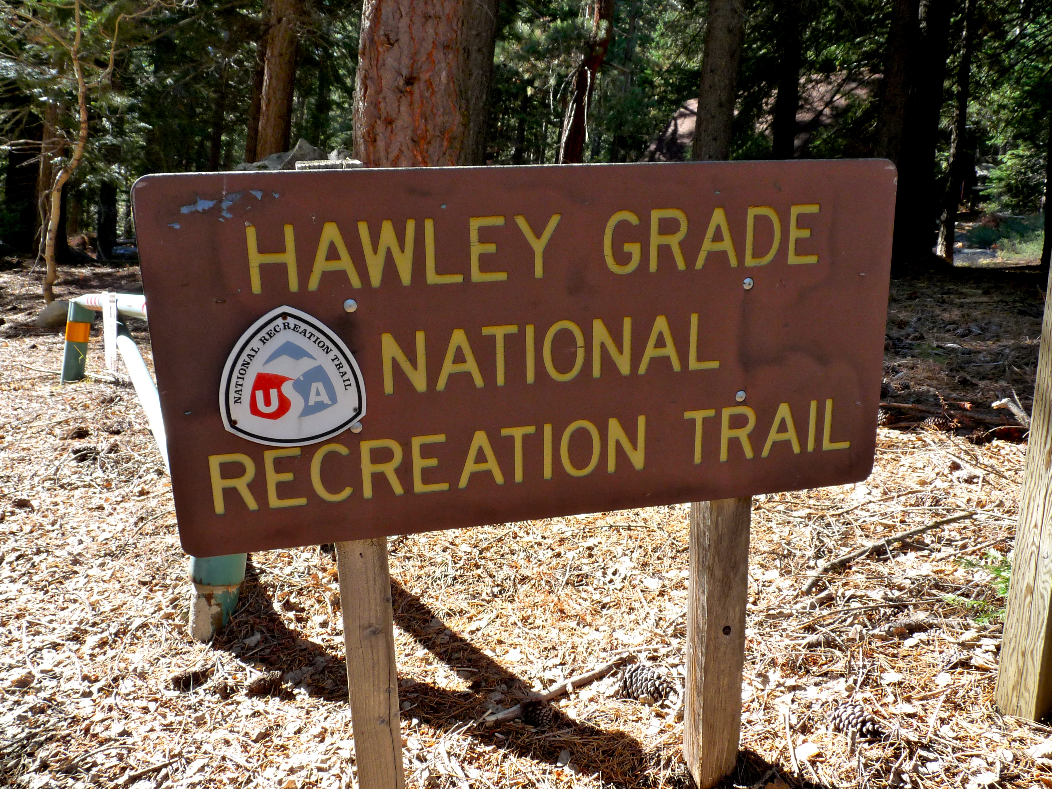 “Along Hawley Grade you relive a bit of California’s history by ascending the first wagon road to be built across the central Sierra. Hawley’s Grade was a short-lived but key link in a trans-Sierra route to Hangtown and Sacramento. By 1850, Hangtown–today’s Placerville–had become the unofficial capital of northern California’s gold-mining region, and two years later a route of sorts was built from it to Johnson Pass–1/4 mile north of today’s Echo Summit–from where it dropped into Lake Valley. Drop it did, so steeply in fact that block and tackle had to be used to haul westbound wagons up it. An alternative grade had to be found.