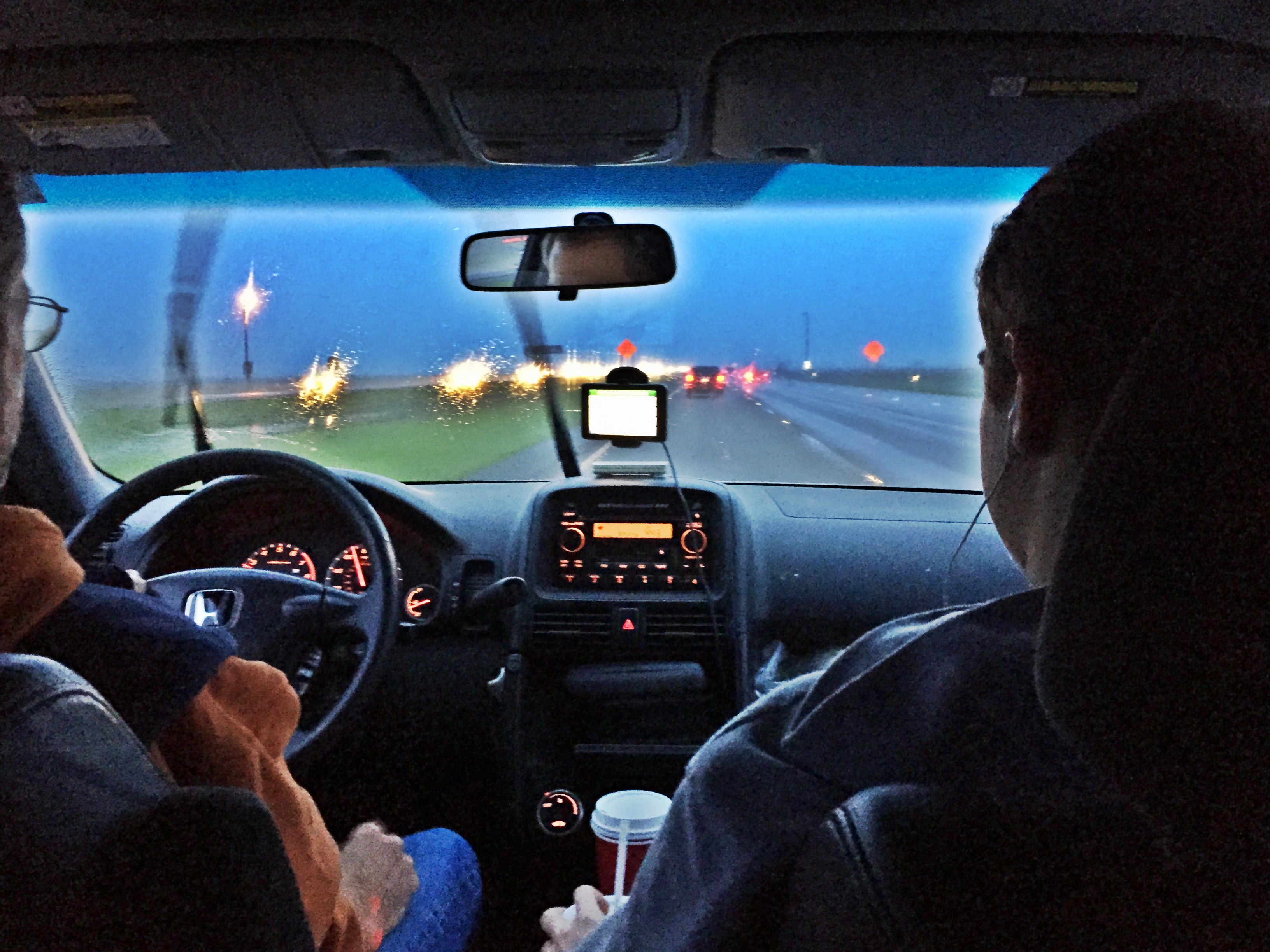 Thought we were in for a far ickier ordeal, but in the end, just your garden-variety, pre-Christmas, trafficky, rainy drive down I-5. It wasn’t pretty, but we made it without incident. Eight hours, including two stops and a lot of stop and go between Davis and Stockton. We had one moment of heart stopping drama, when, near the interchange of I-80 and I-5, we came to a full stop just feet away from the car in front of us, while the car behind us screeched to a stop within inches of our bumper.  The screech was long and loud and all we could do was sit and wait for the impact… but it didn’t come. After that just soggy, muddy, splashy driving… senses a bit more heightened.