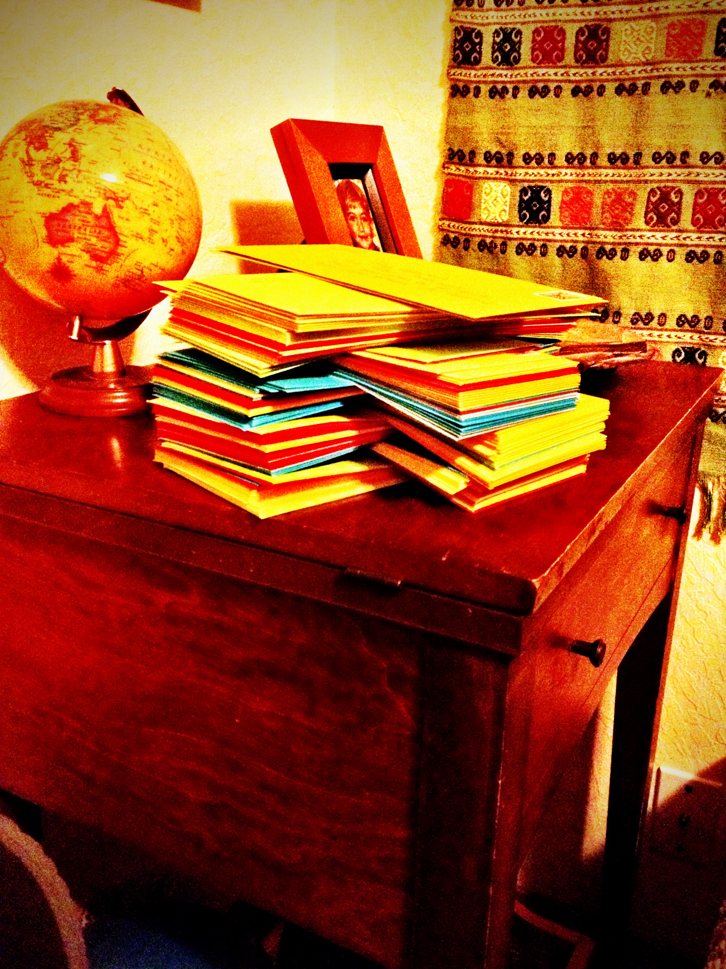 Those are envelopes that have been addressed and stamped (and apparently counted) and are awaiting the photo card that goes inside. Definitely one of the more tasky aspects of the holidays.