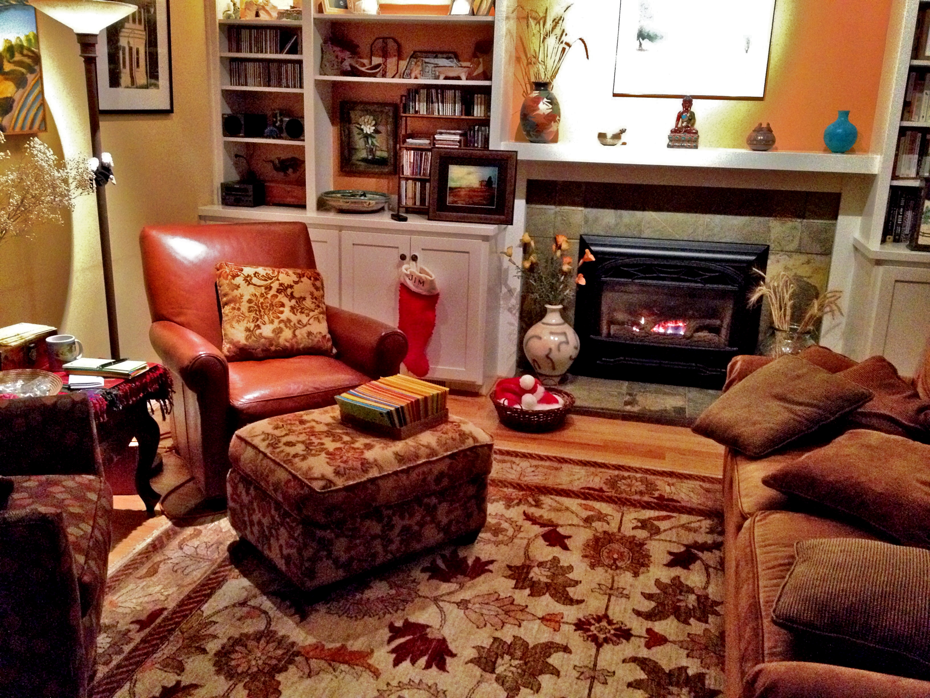 So, talk about a staging area… hazzah! I sat here and stuffed envelopes and wrote on a few of the cards. It’s supposed to be a joyful thing, right?, connecting with family and friends, sharing a part of yourself and your life over the past year. For me, the task becomes so much more pleasant if I give it time and do it in a space I love to be in. I actually fell asleep.