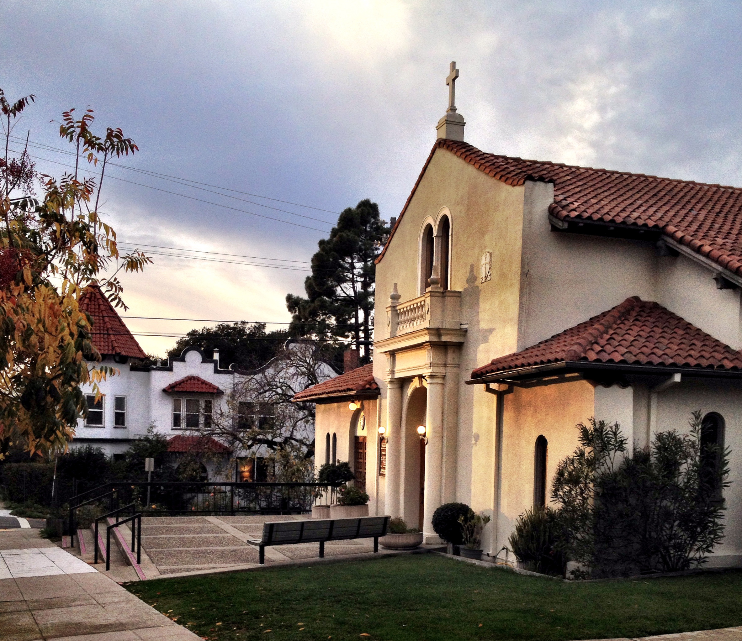 The church in a Berkeleyesque neighborhood just off The Alameda: