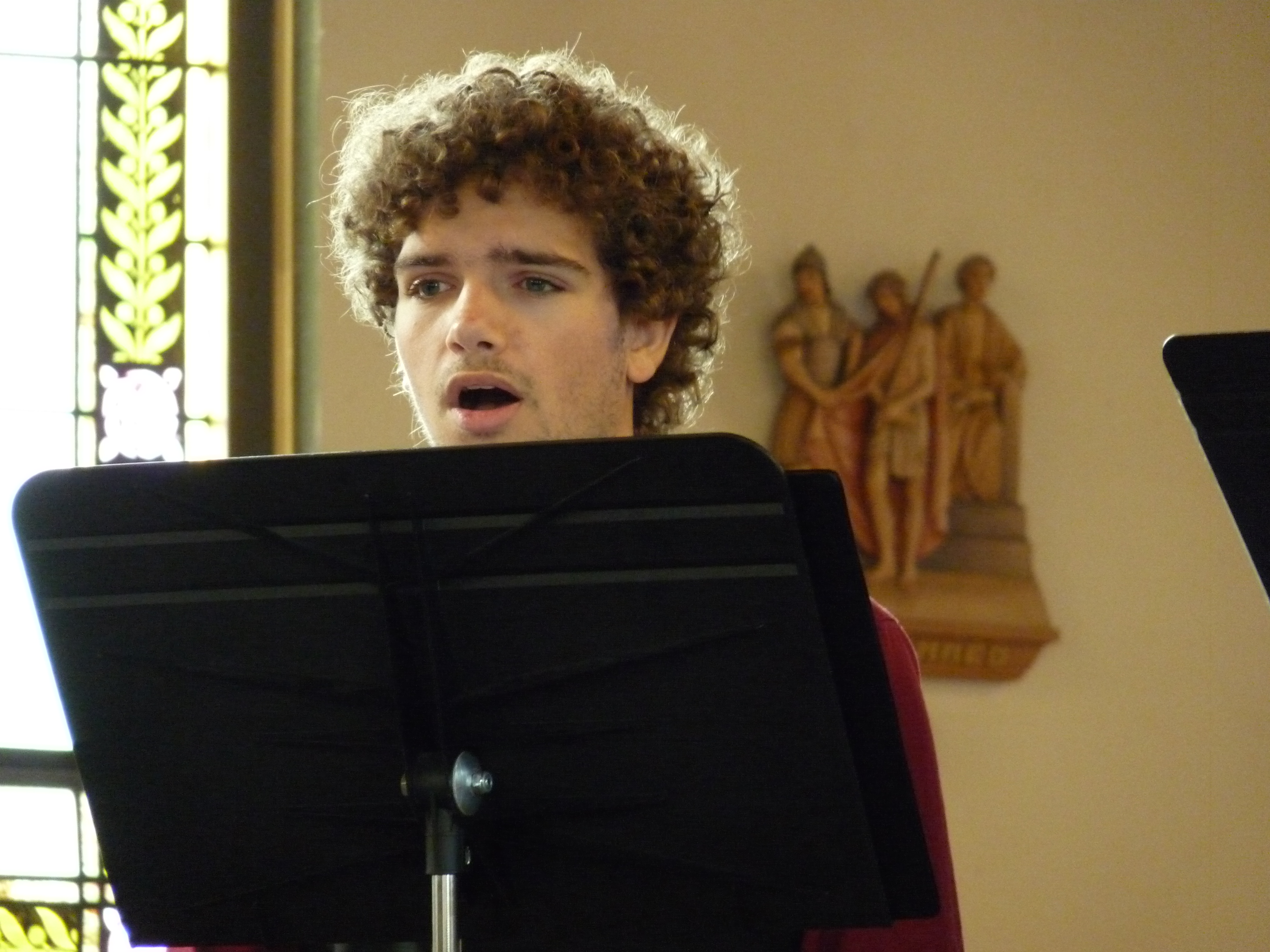 St. Mary Magdalen Catholic Church, concert this afternoon in Berkeley. Monica (alto)–one of four paid soloists–and Ben (tenor)–chosen for one of the eight remaining choir slots–sang. It was the first time mom and son had performed together. Very sweet.