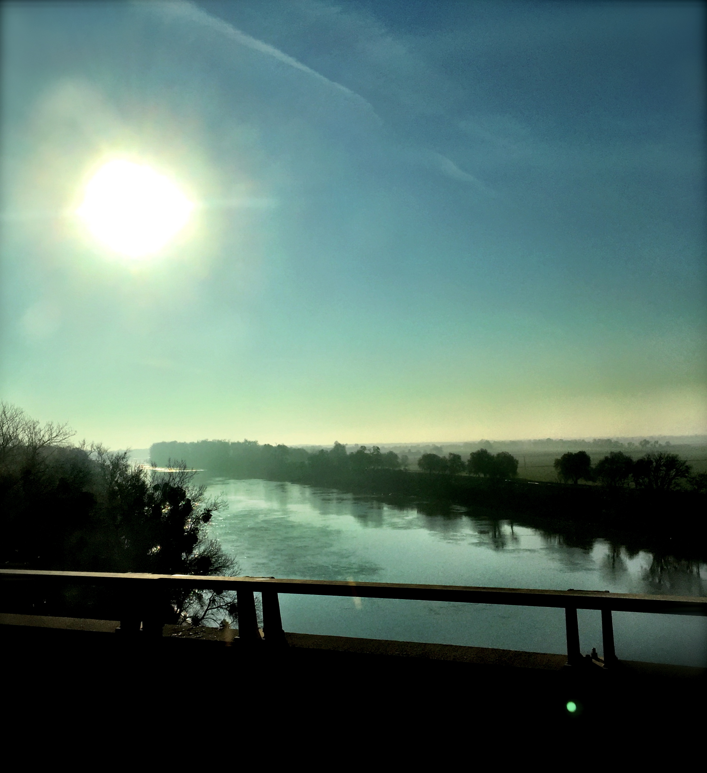 Beautiful sunrise through mist on the Sacramento River: