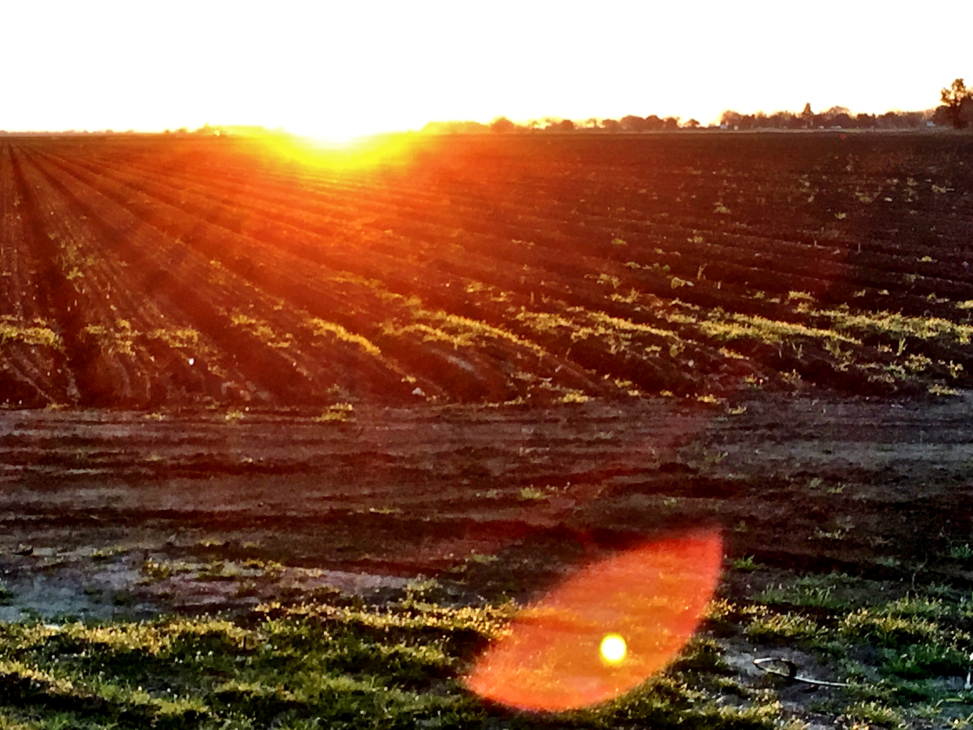 Sun rising over crops: