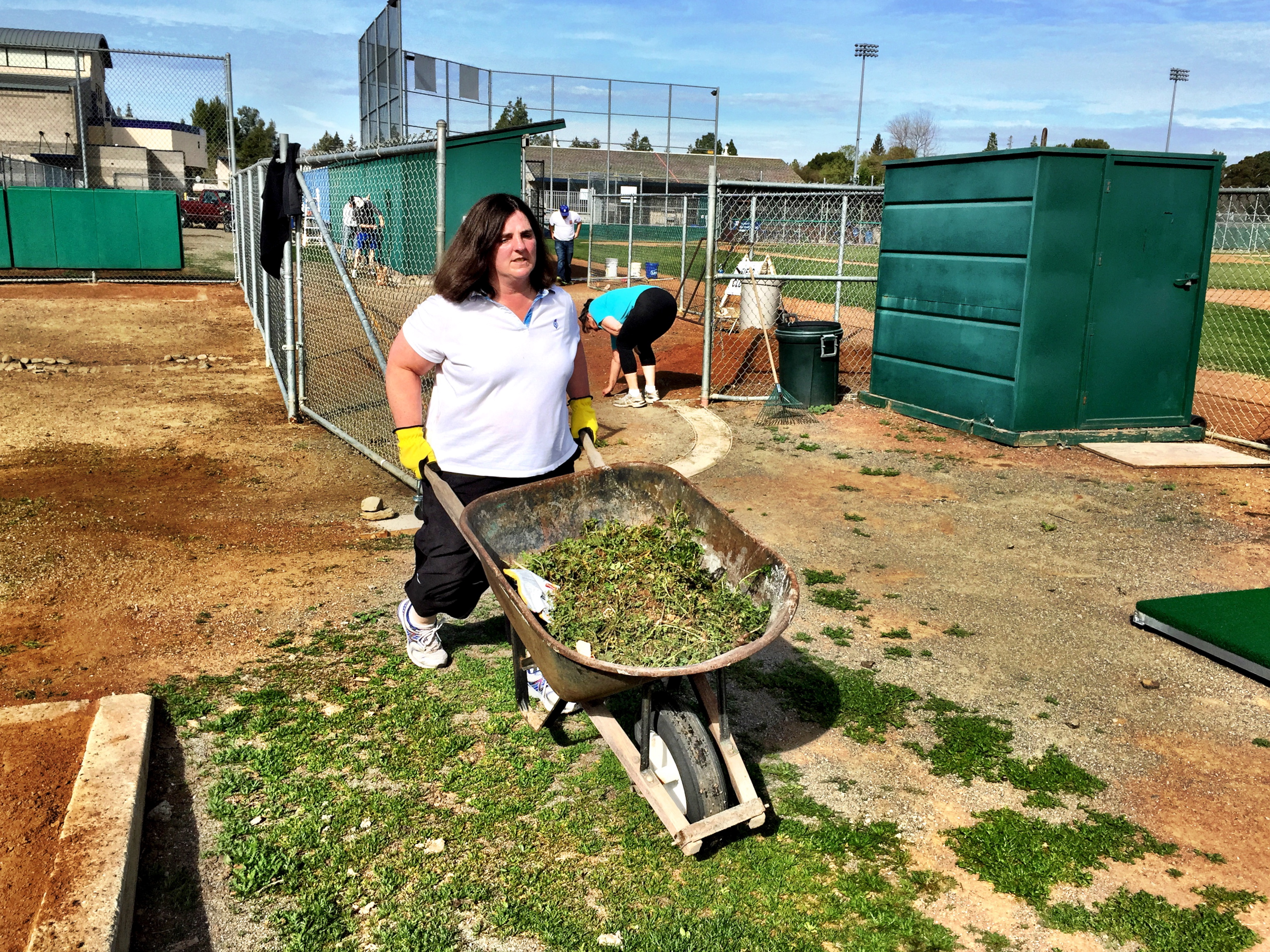 This was my area (with Margie and Dianna): the visitor dugout. The weed-free visitor dugout.