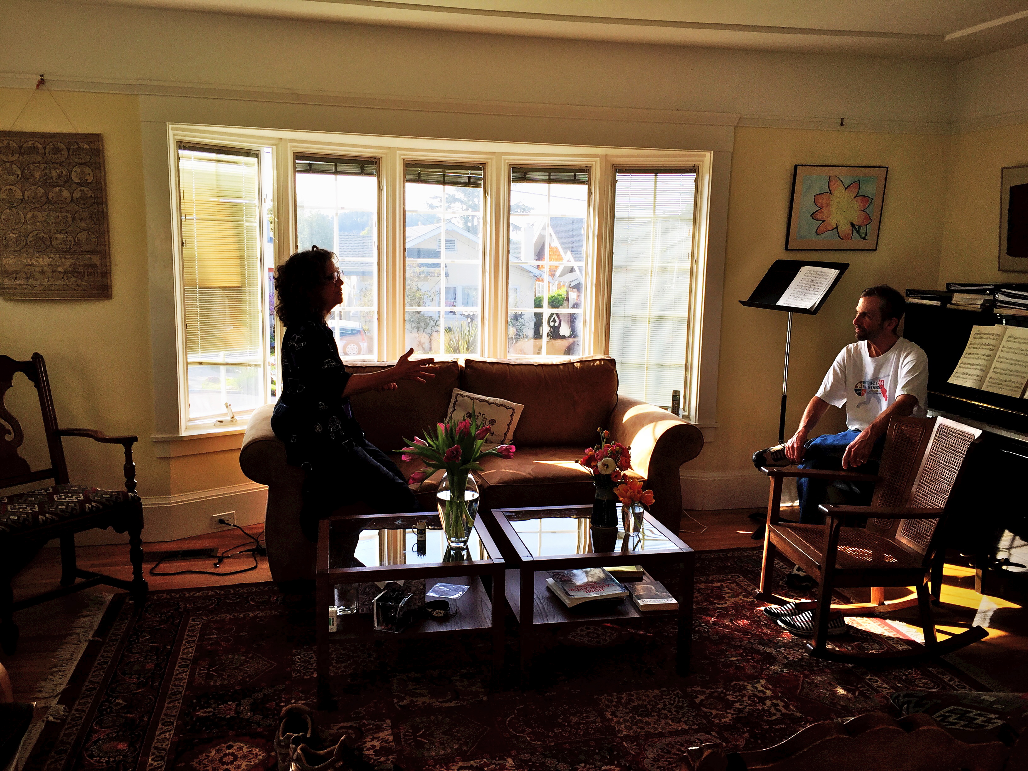 Monica and Jim, talking about dreams, I think (as in the powerful one Jim had last night about finding a porcelain owl atop a sand dune).