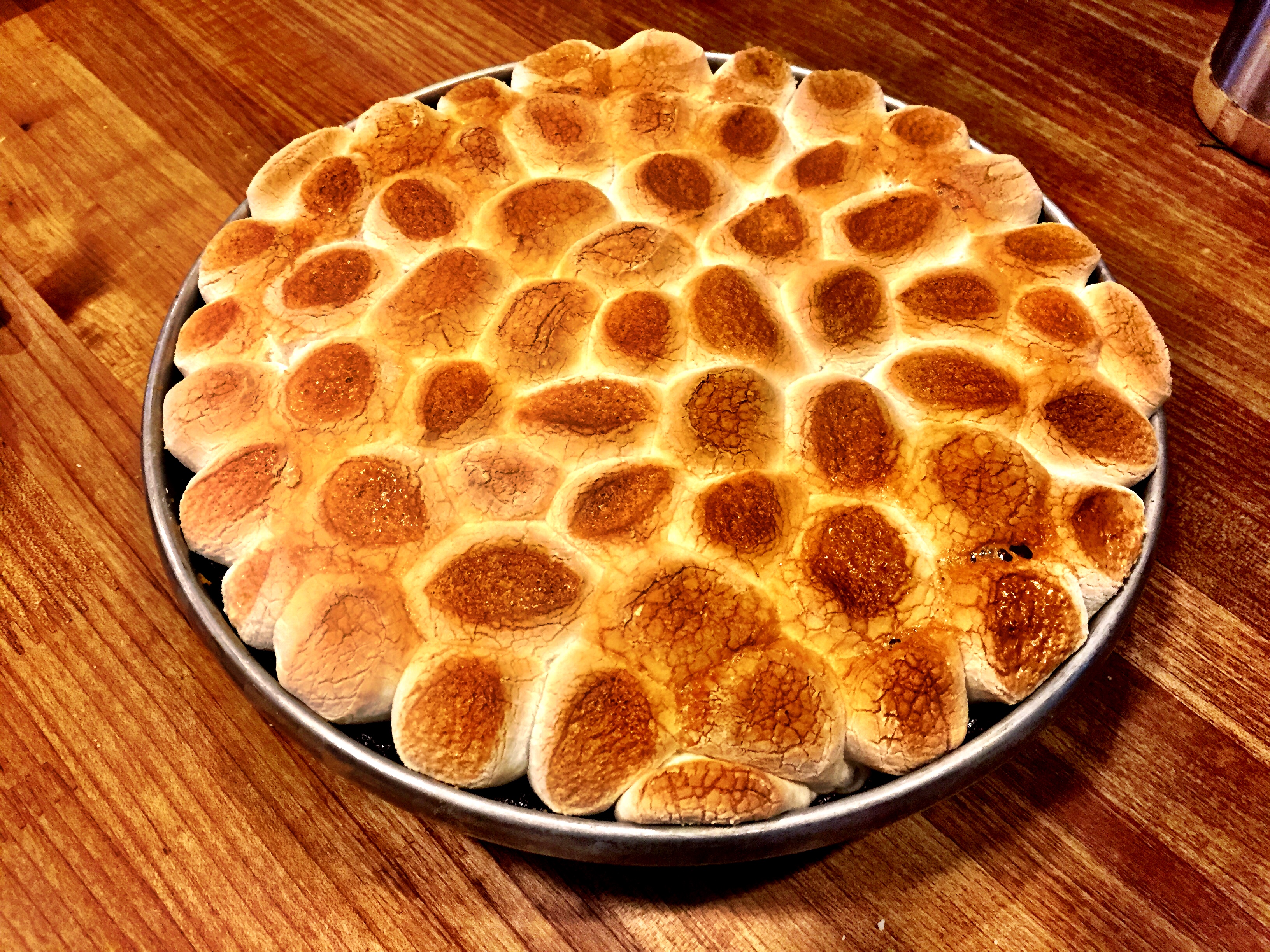 Then it goes under the broiler, and comes out like this–roasted marshmallows.