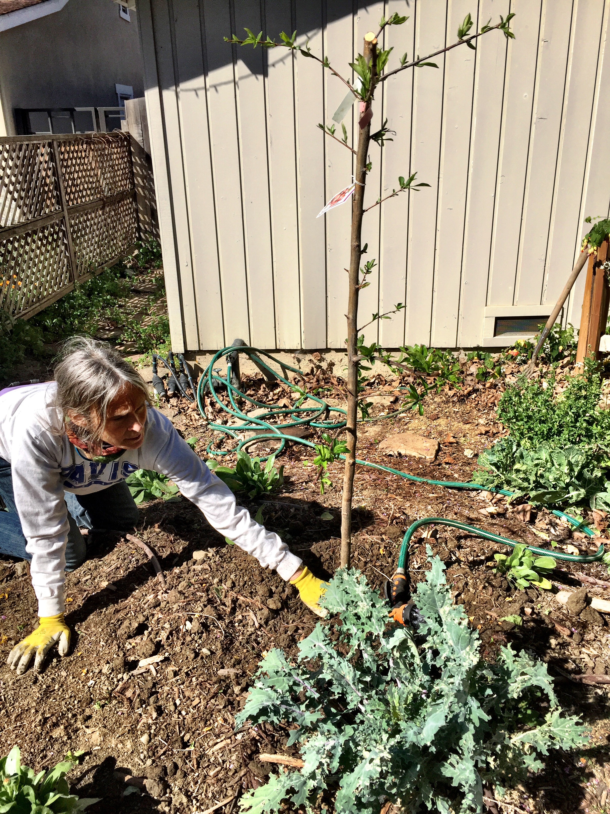 When last I left you, we’d removed a tangelo, two redbuds, a cherry, and two volunteer figs. We’d also shifted a couple of peaches, relocated a lime, and just acquired a new Meyer lemon and Japanese maple. I won’t go into more distant history and the loss of our beloved almond, ornamental plum, and Bradford pear that canoped our driveway, nor the departure of our long ago modesto ash, first sycamore, several birches, numerous crape myrtles, and countless victims of armillaria (a couple of maytens and our first Japanese maple)…