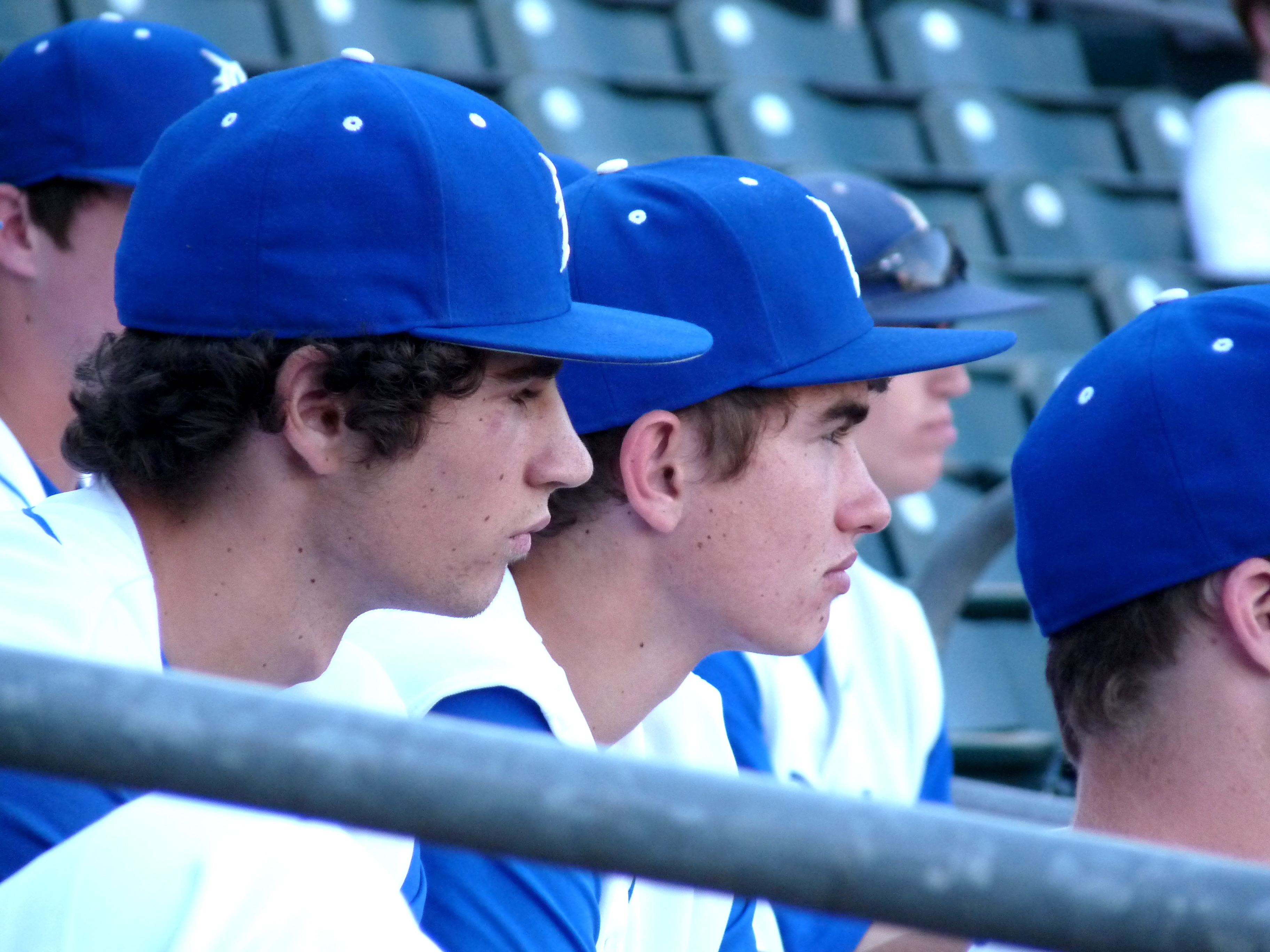 Varsity guys sat in the stands and watched JV guys play in the first game… Solly, Peter, Ian’s mouth and a few unidentified ears: