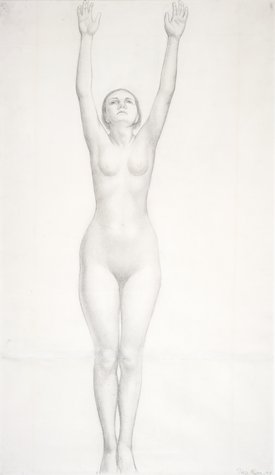 I really loved this one (and bought a refrigerator magnet of it, of course). Jane said it was of the great 1920s tennis player Helen Wills (Moody), who may or may not have been romantically involved with Rivera (though he was married to Frieda Kahlo). This study ultimately became part of the ceiling portion of this mural; you can see the ends of her legs in the photo above.