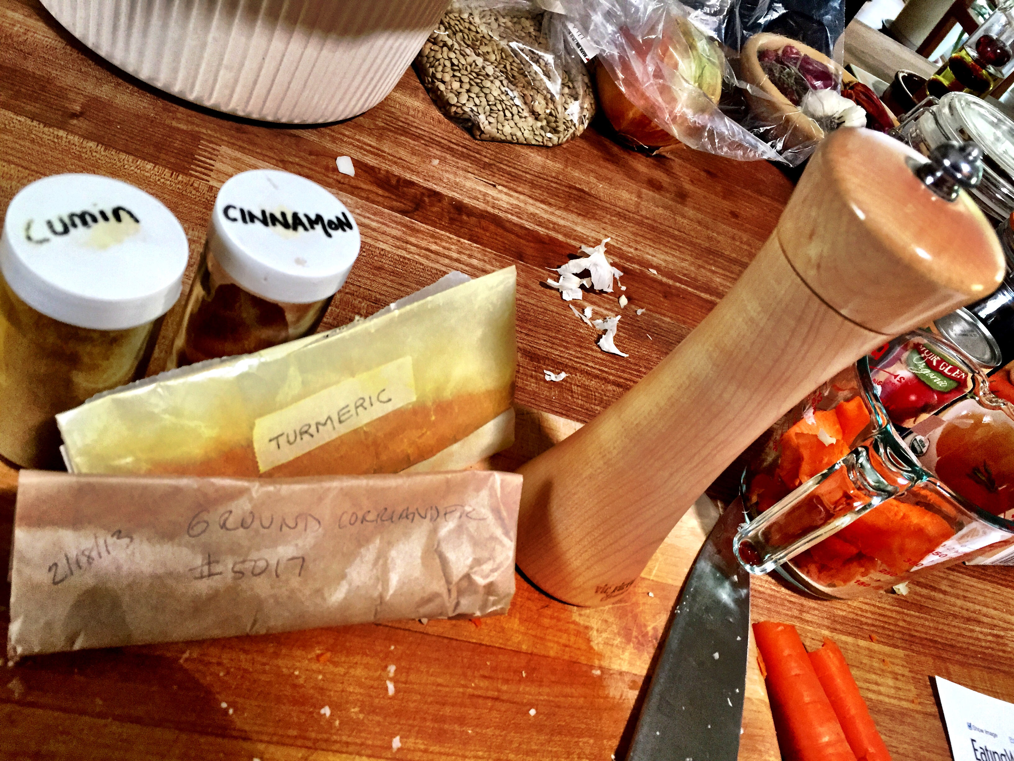 and ground turmeric, coriander, cumin, cinnamon and pepper..