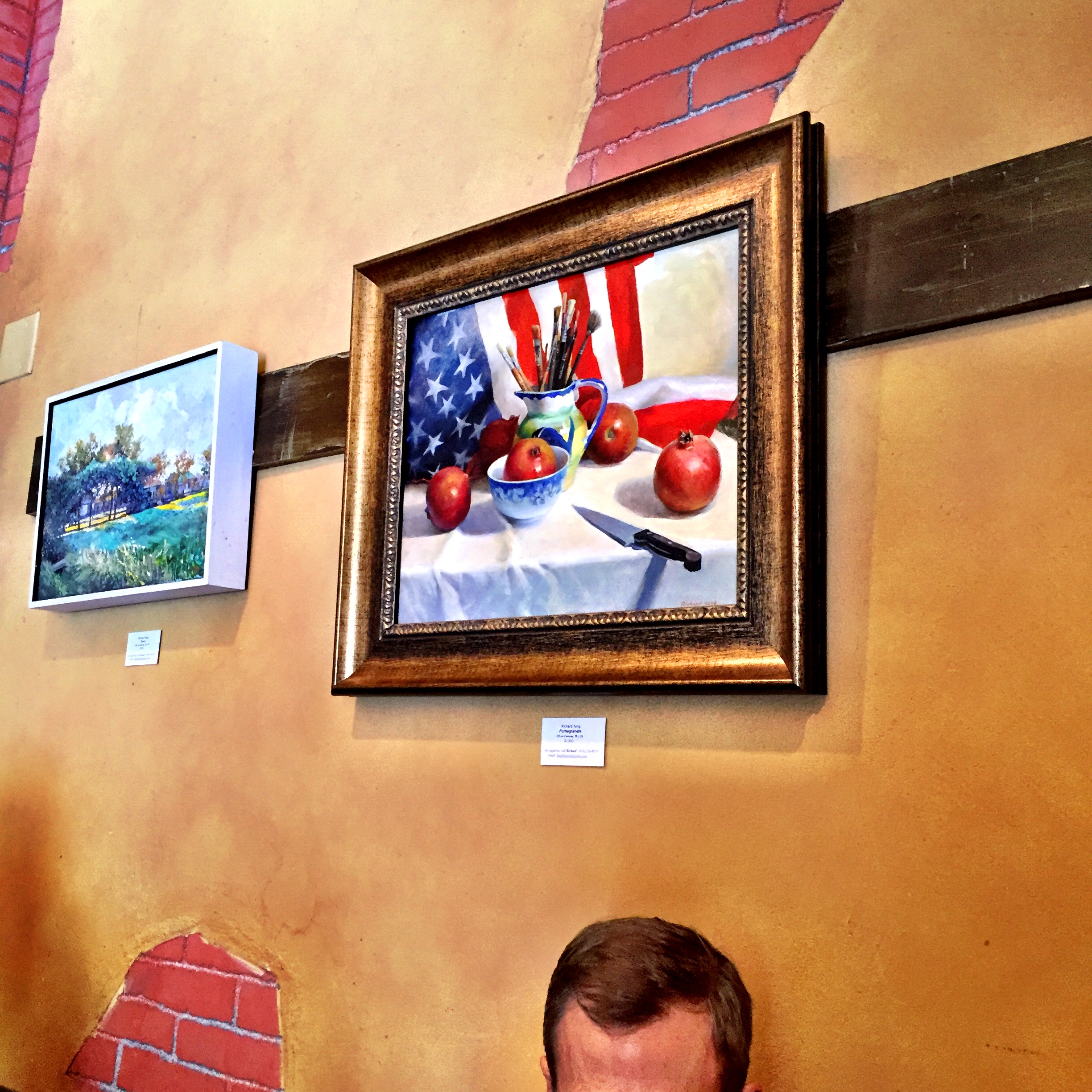 Naturally occurring surrealness, from my phone to you. No doctoring, no filters; not sure why Jim looks so weird (never mind the fallen plaster and teetering knife)… just does.