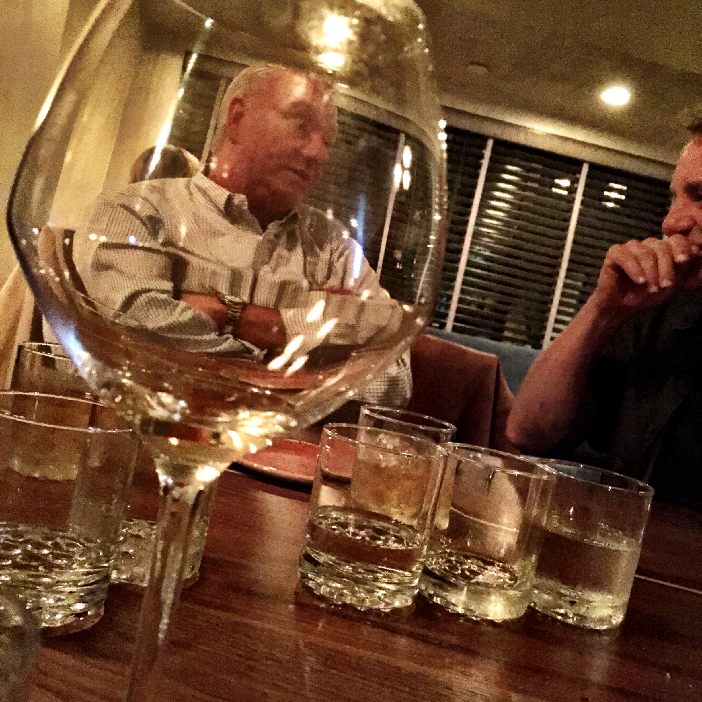 Here’s my artsy fartsy of Matt and Chris, across the table, through my empty wine glass: