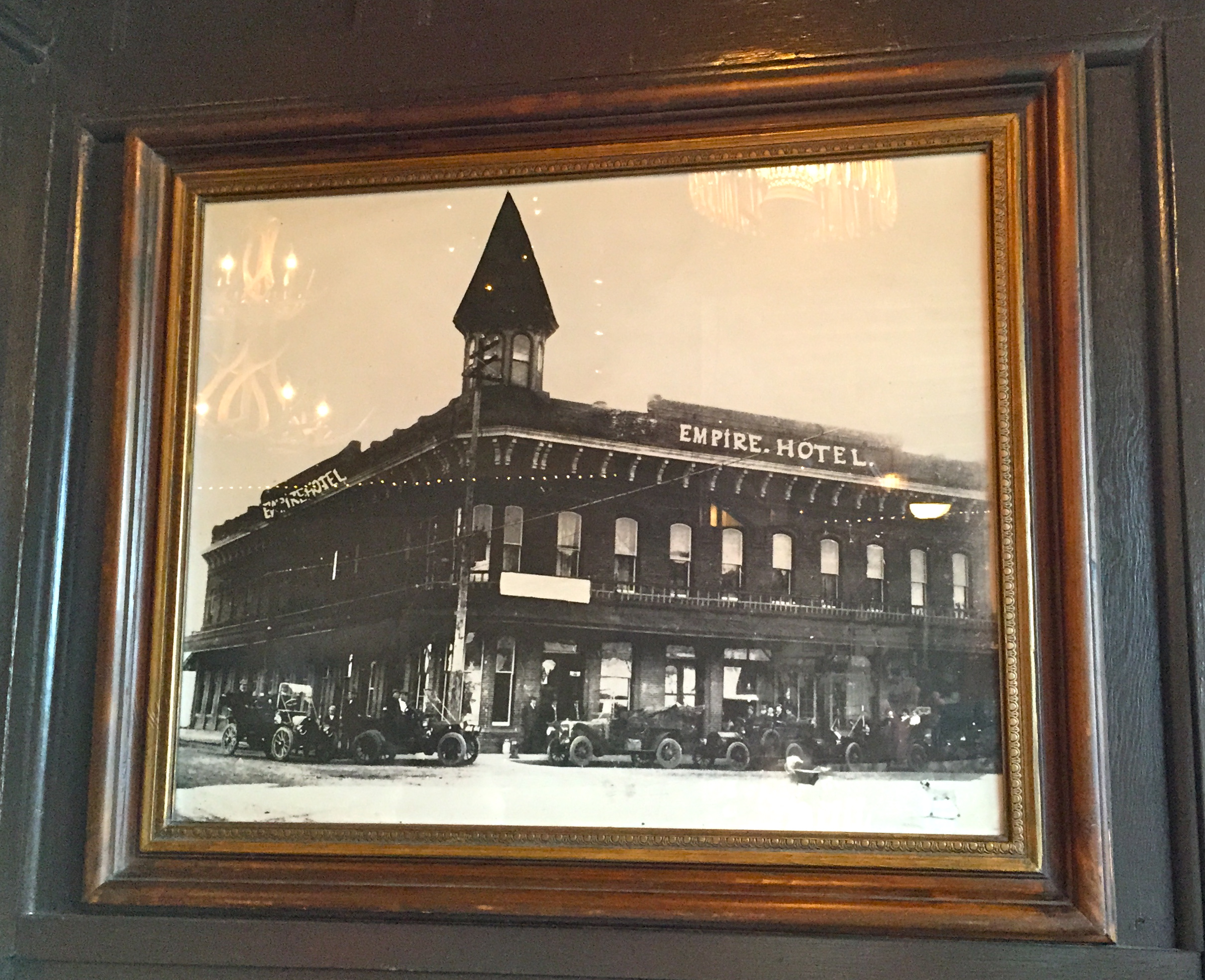 Then Peter joined us and we all went to the Buckhorn in the heart of Winters … housed in what was originally the DeVilbiss Hotel, built in 1889 on the corner of Railroad and Main Street (not sure when or why it was called the Empire Hotel)….