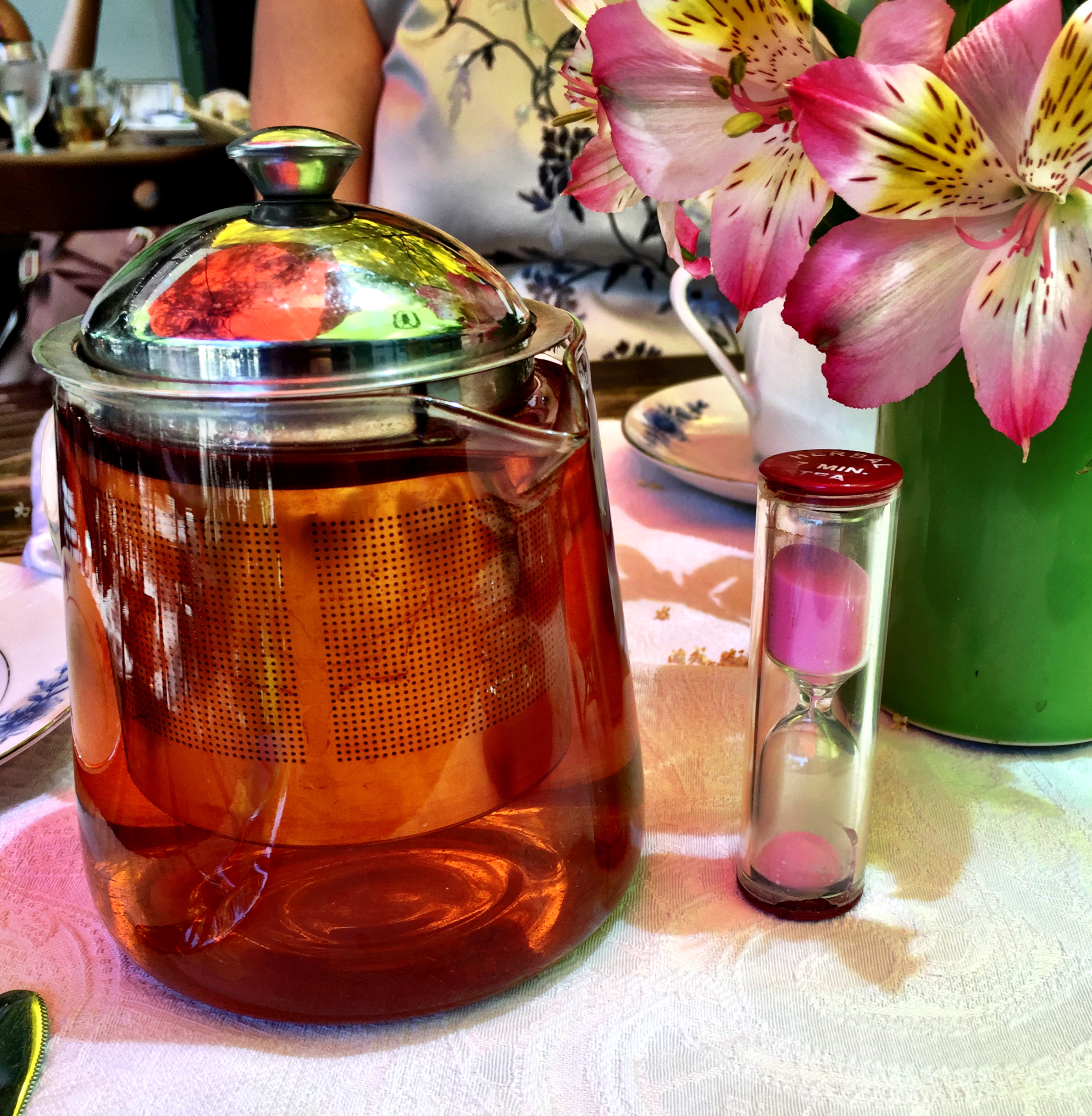We chose some sort of vanilla tea that came with its own 7-minute timer for optimal steeping, complete with pink sand: