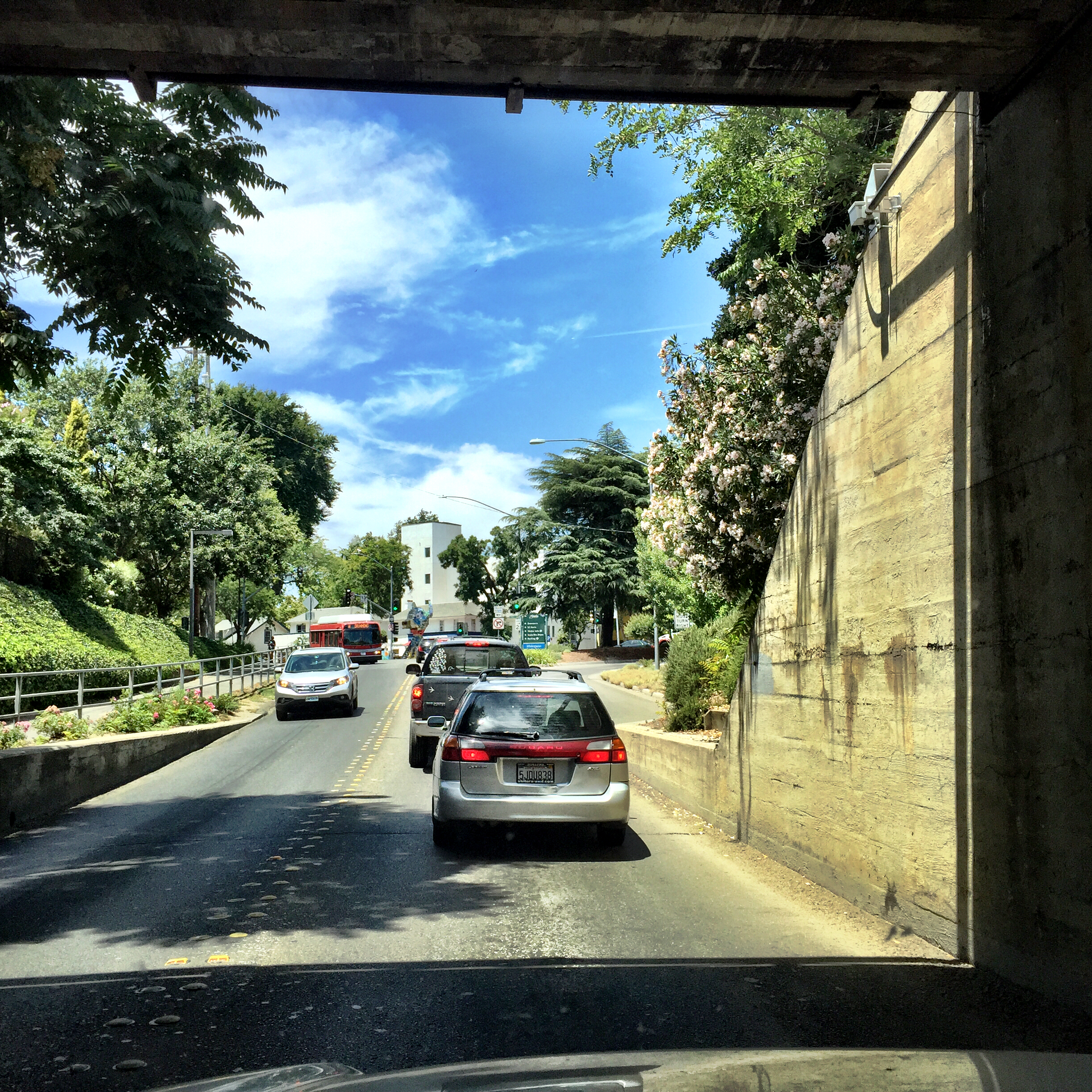 Picked up our car from Center City with its brand new head gasket and a whole bunch of other engine-related things otherwise too difficult to get to unless you remove the engine completely from the car. That was $3300 worth of fun. Driving home from the gas station, sat in the Richard’s Blvd underpass. I always find this view coming into downtown a little thrilling: