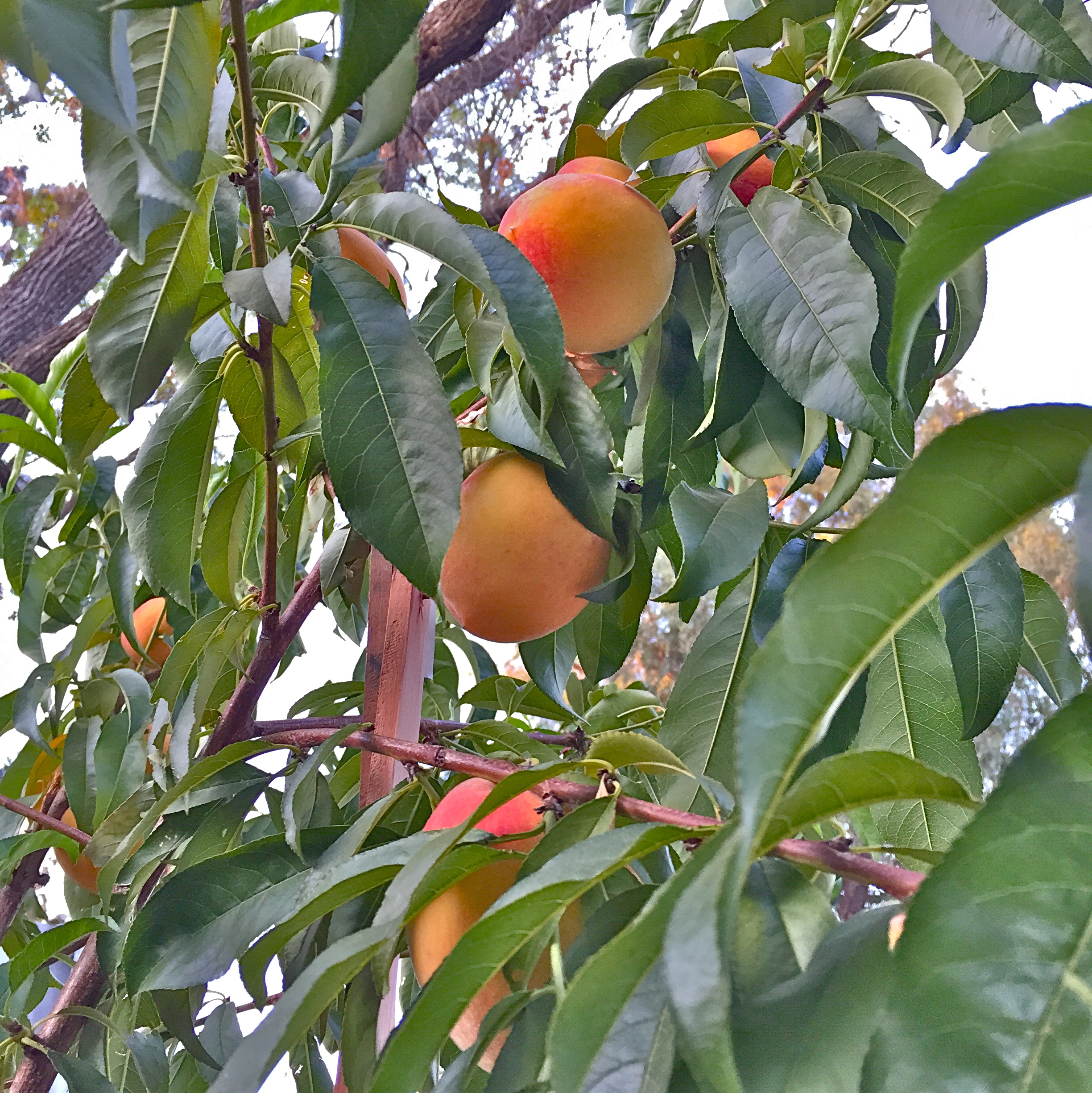 But, hey, we’re pretty excited over here about our peach tree.. considering it was a cast off from our neighbor, Anna, who is a pomology post doc, has lived next door for about five years, and who, about four or five years ago, gave us a couple of starter peach trees (“Hey, would you guys be interested in a couple of trees from our lab?”). At the time, they were about two feet long, and really just looked like fat twigs.