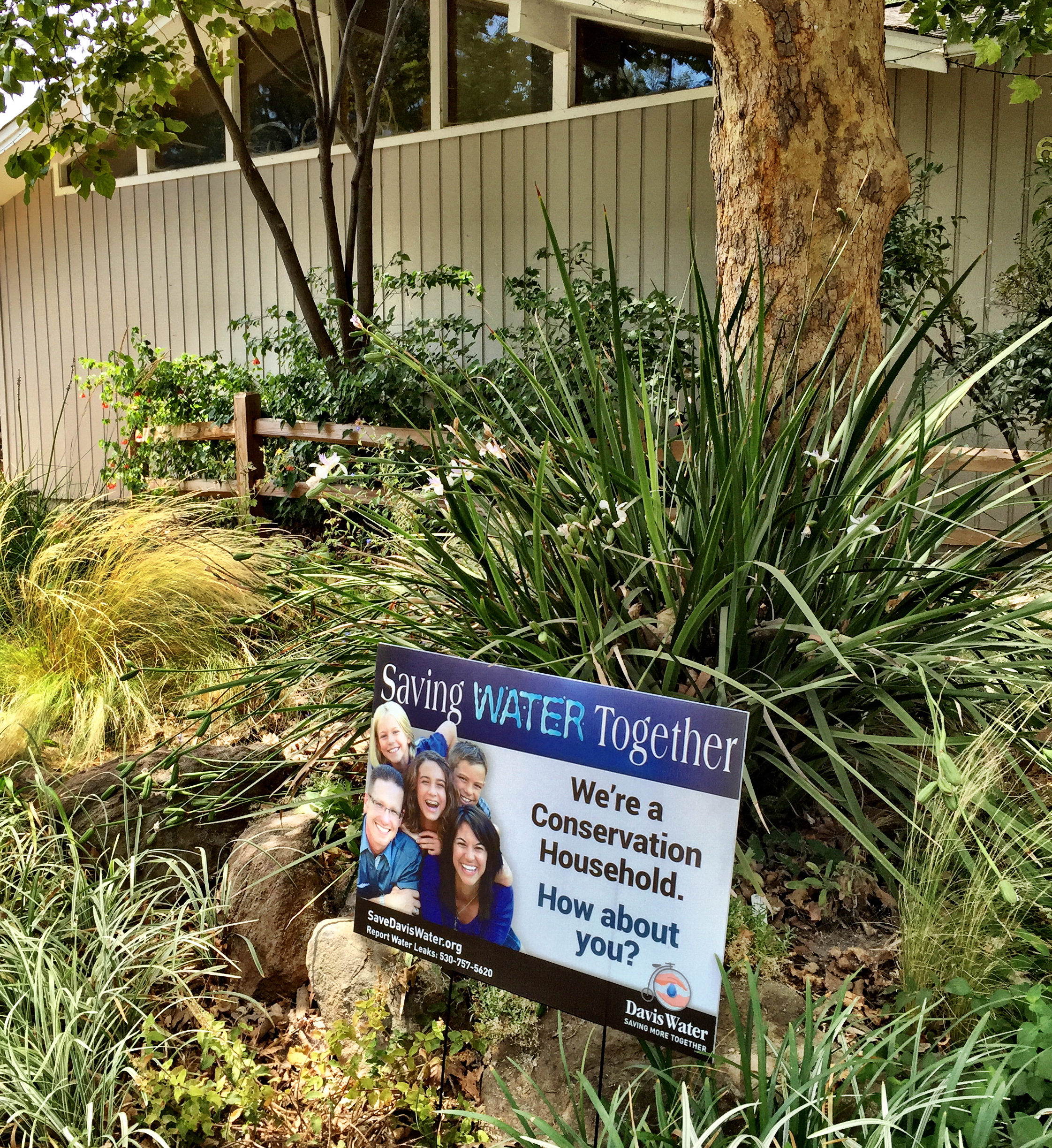 We got this very nice letter the other day from the City of Davis’ Conservation Coordinator, Jennifer Gilbert, who thanked us for our water conserving efforts (at least as far as she observed in our front yard–don’t tell her we still have a lawn in the backyard), and congratulated us on being a conservation role model.