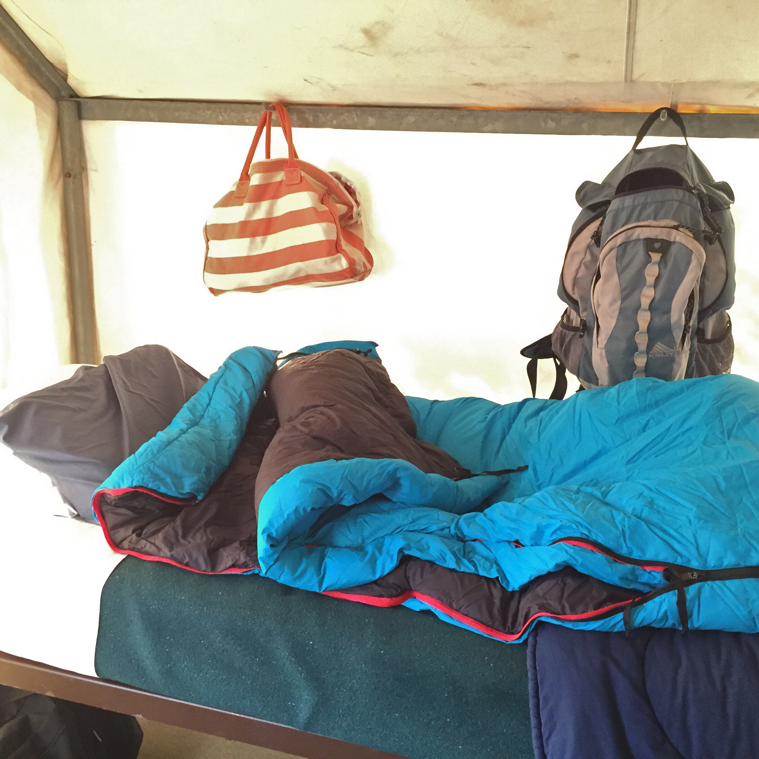 Checked in, settled into cabin #4, as per request. The cabin has four beds… one for each of us, and one for all our suitcases and clothes duffles. This is my quarters..