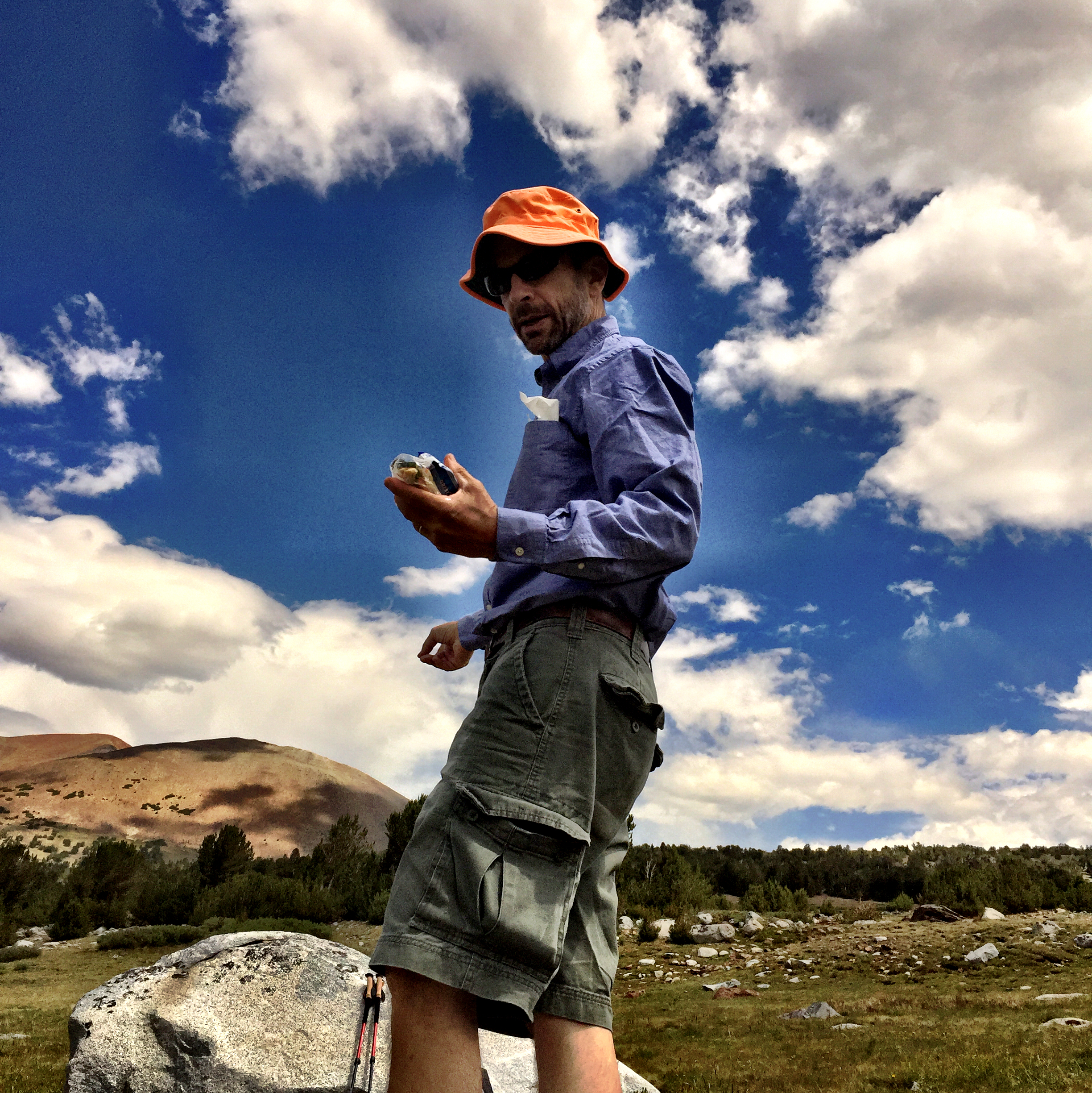 Here is another picture Jim took, this one of Peter at Bingeman Lake. That is Mammoth Peak off to the right!