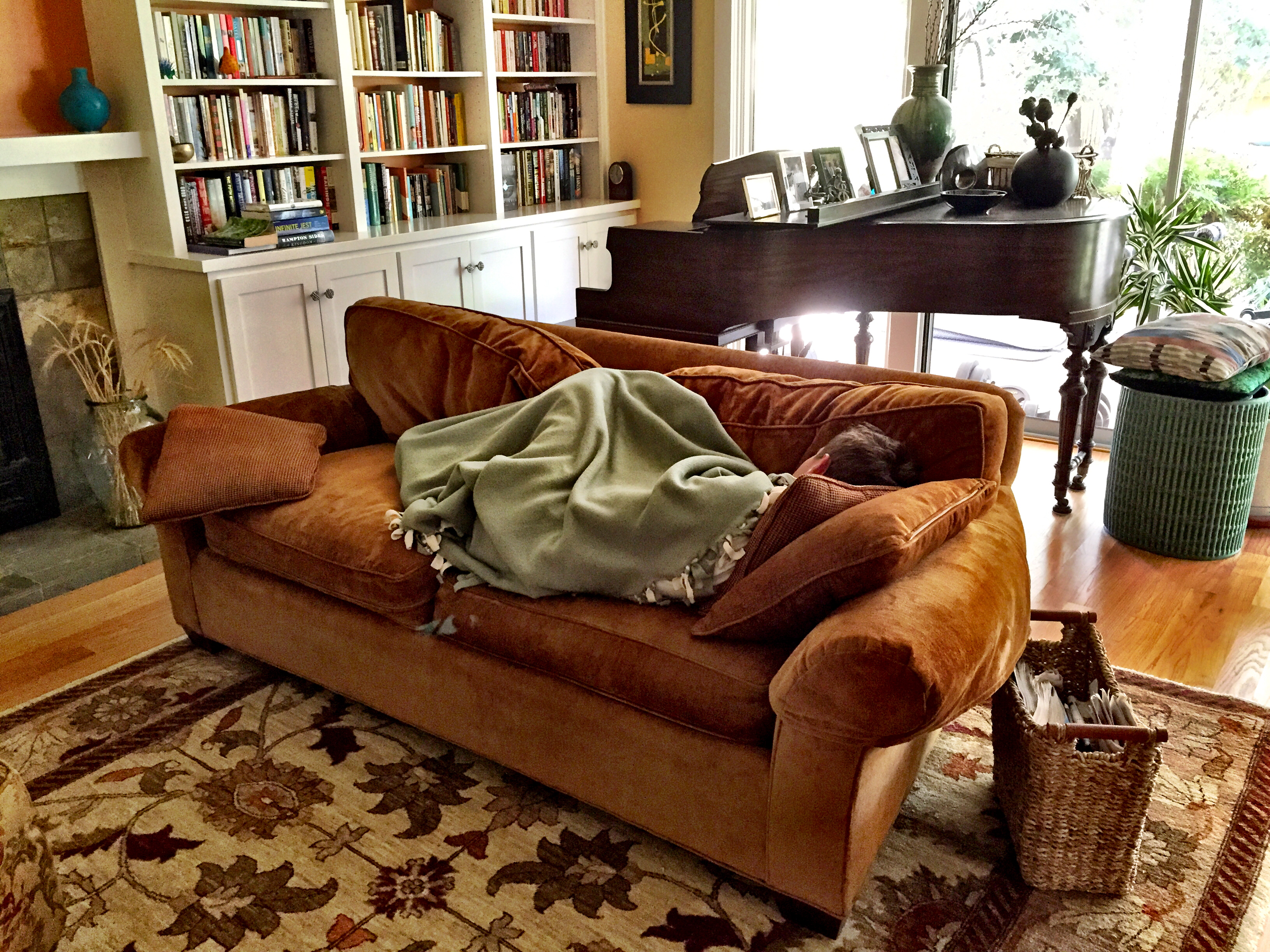 The work of the day was about 1) getting that key; and 2) hauling as many boxes back to Sacramento as would fit in a Toyota Highlander… and still have room for Aqua dog. We built a dog cave: