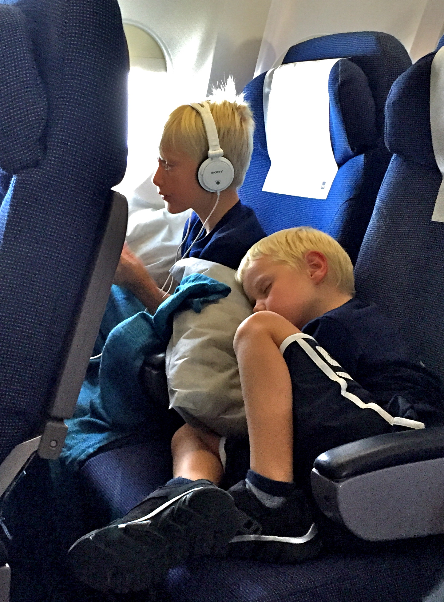 Once onboard, these squirming brothers (not so squirming here) were a steady source of entertainment for me. I had their dad behind me, who apparently drew child management duties for this flight. He was also entertaining. And resourceful.