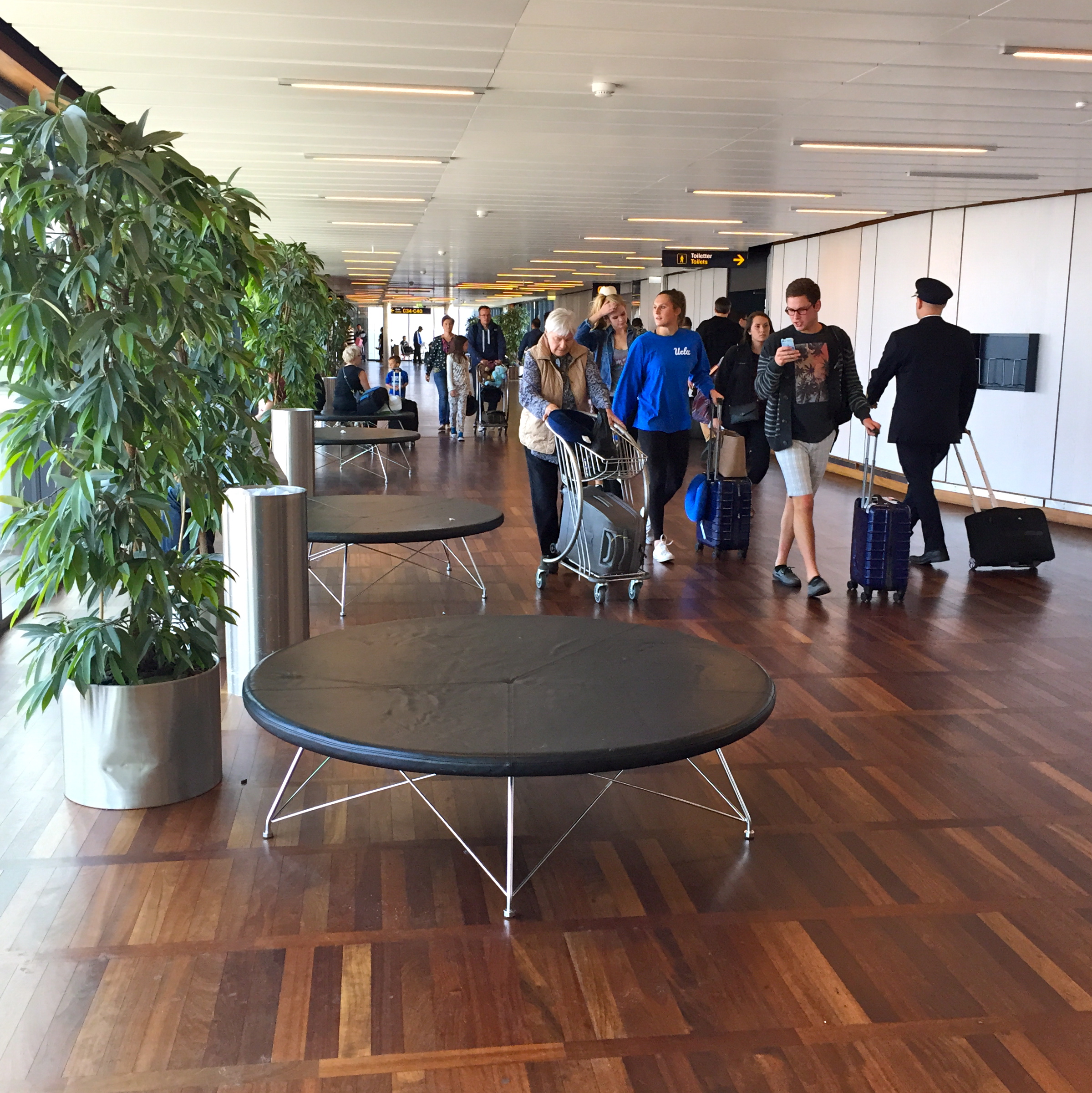 Always interesting to see different countries’ airport design. These are large lounge thingies in the Copenhagen airport where we had a short layover (so short, they missed loading my suitcase onto the next plane to Norway) …