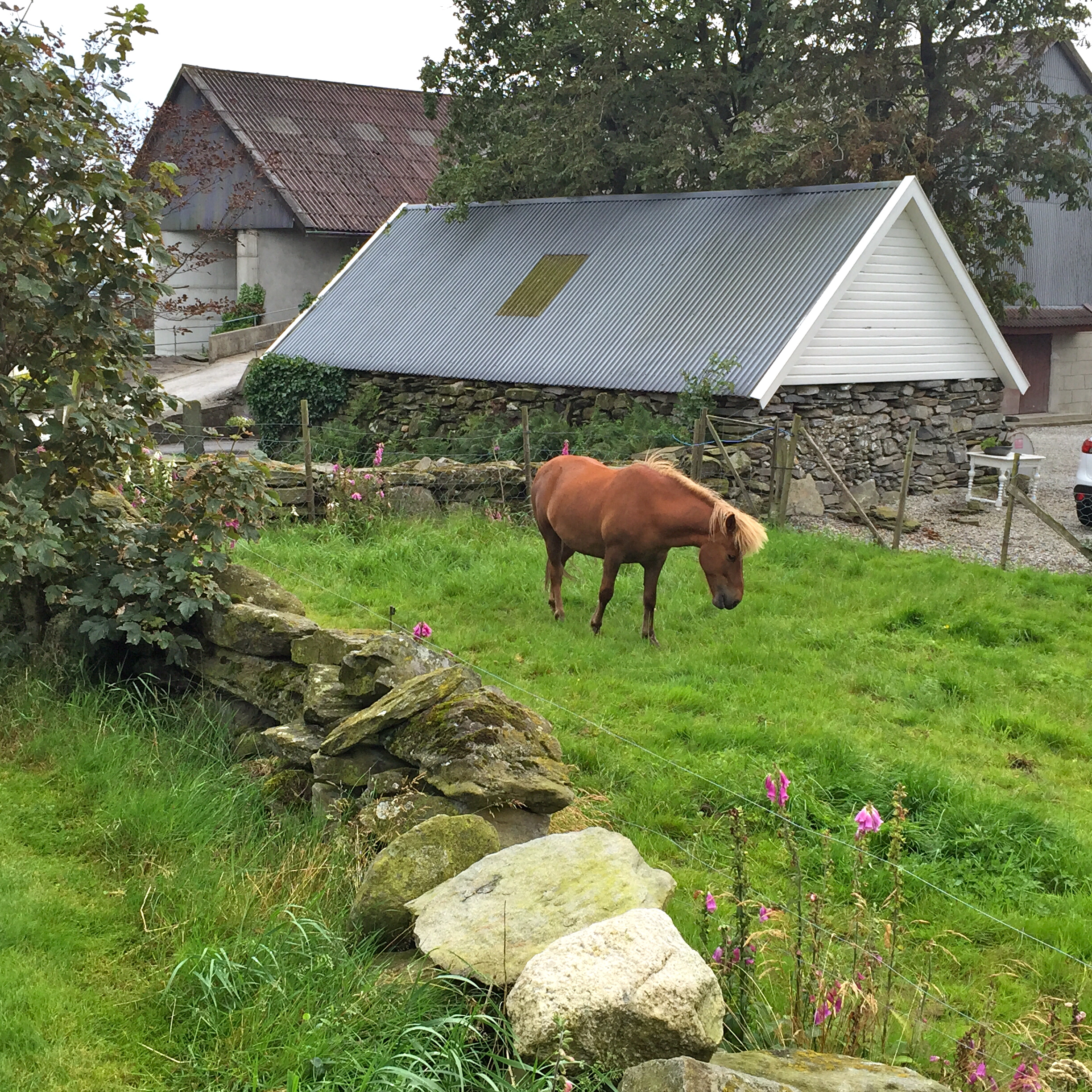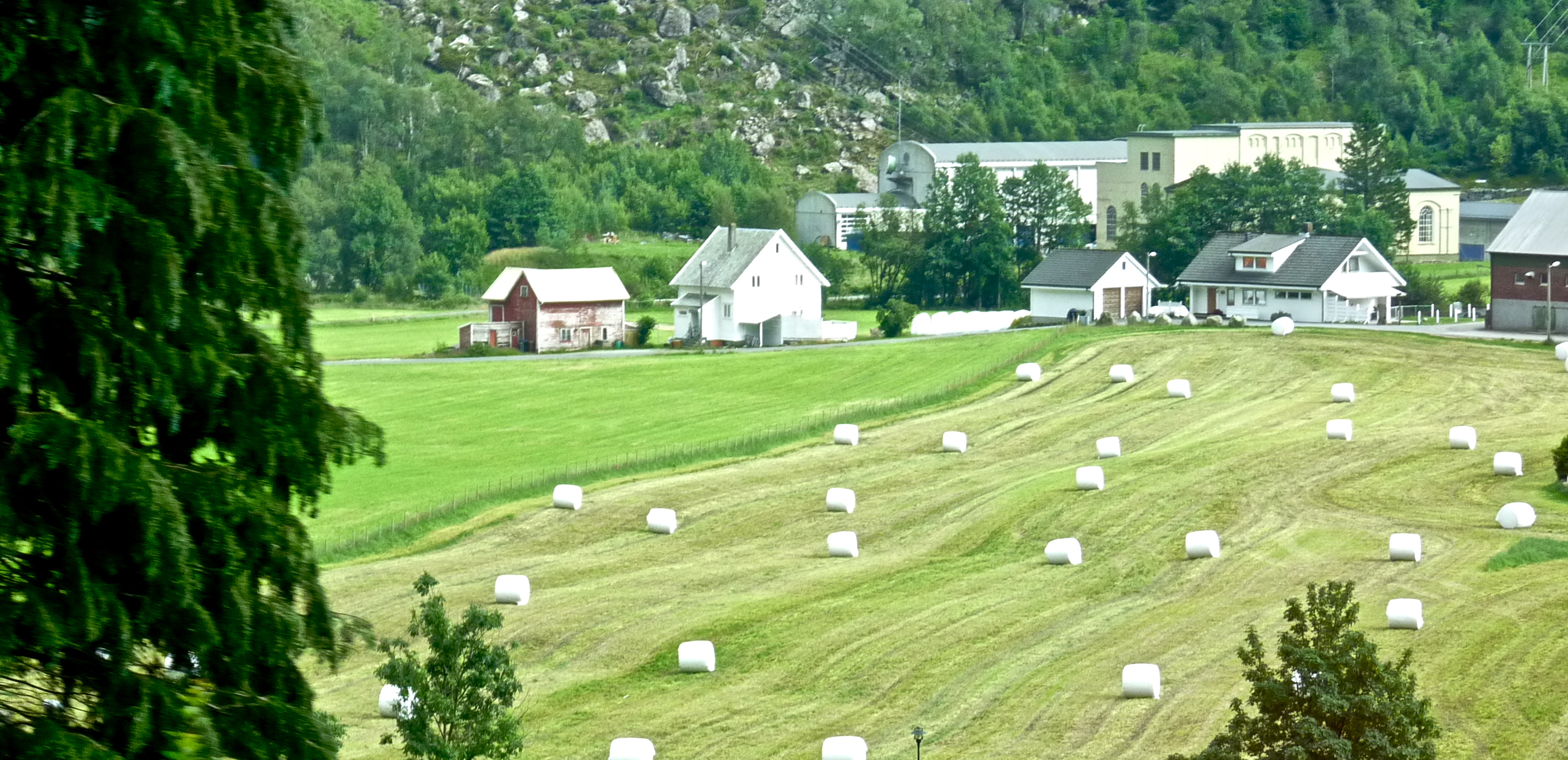 Svein described how the hay is cut, rolled, bundled and wrapped. We’d never seen such things–they look like giant marshmallows–but have since seen gazillions.