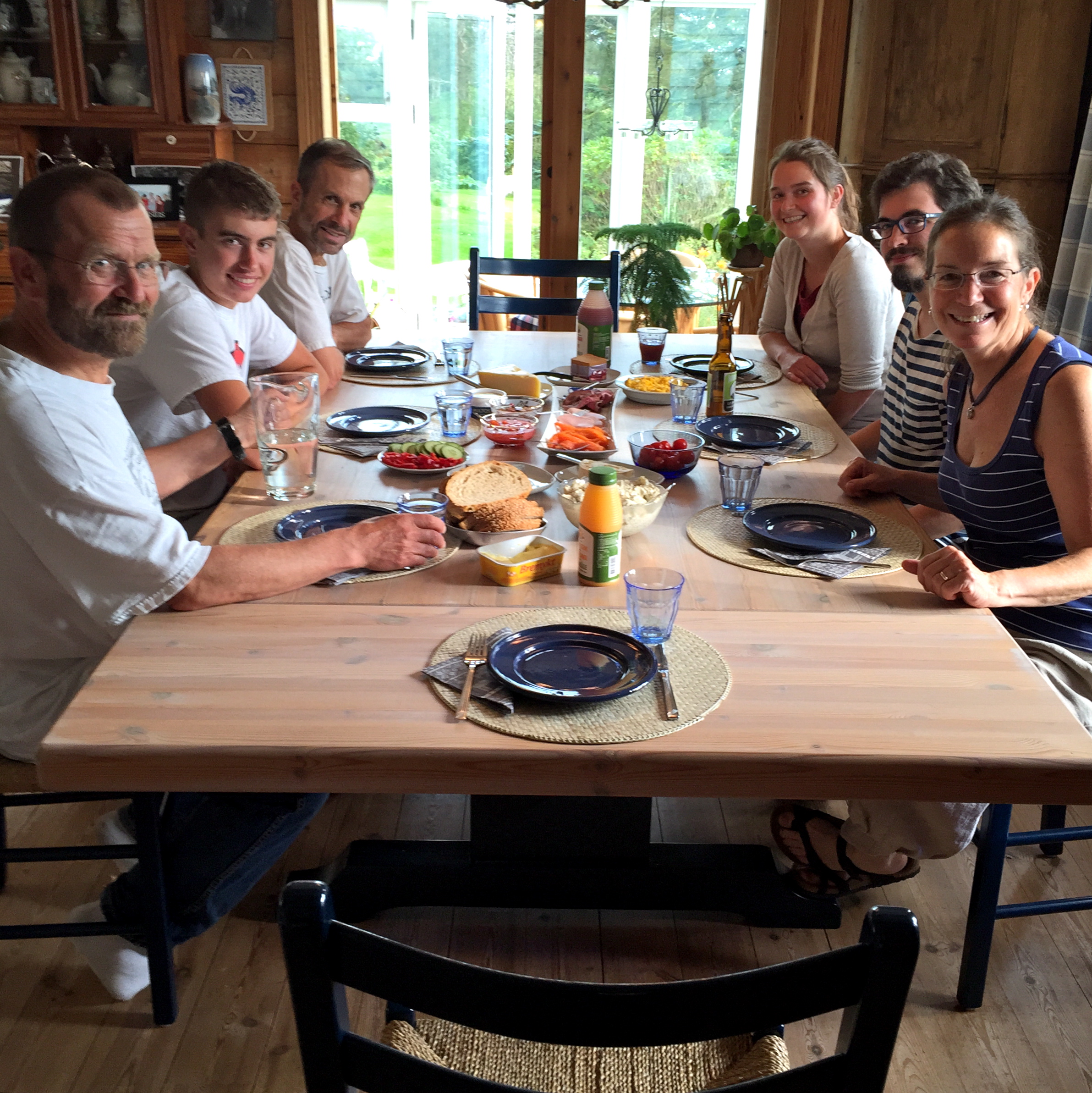 Svein and Leslie’s daughter Marie (we’ll meet up with her twin, Elizabeth, in a few days) had arrived with her boyfriend Knute to say hello. We had an evening smorgasbord (it’s about 6:30 their time): breads, cheeses, eggs, ham, smoked salmon, herring, plum jam (homemade), sparkling wine, teas….