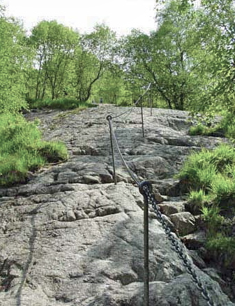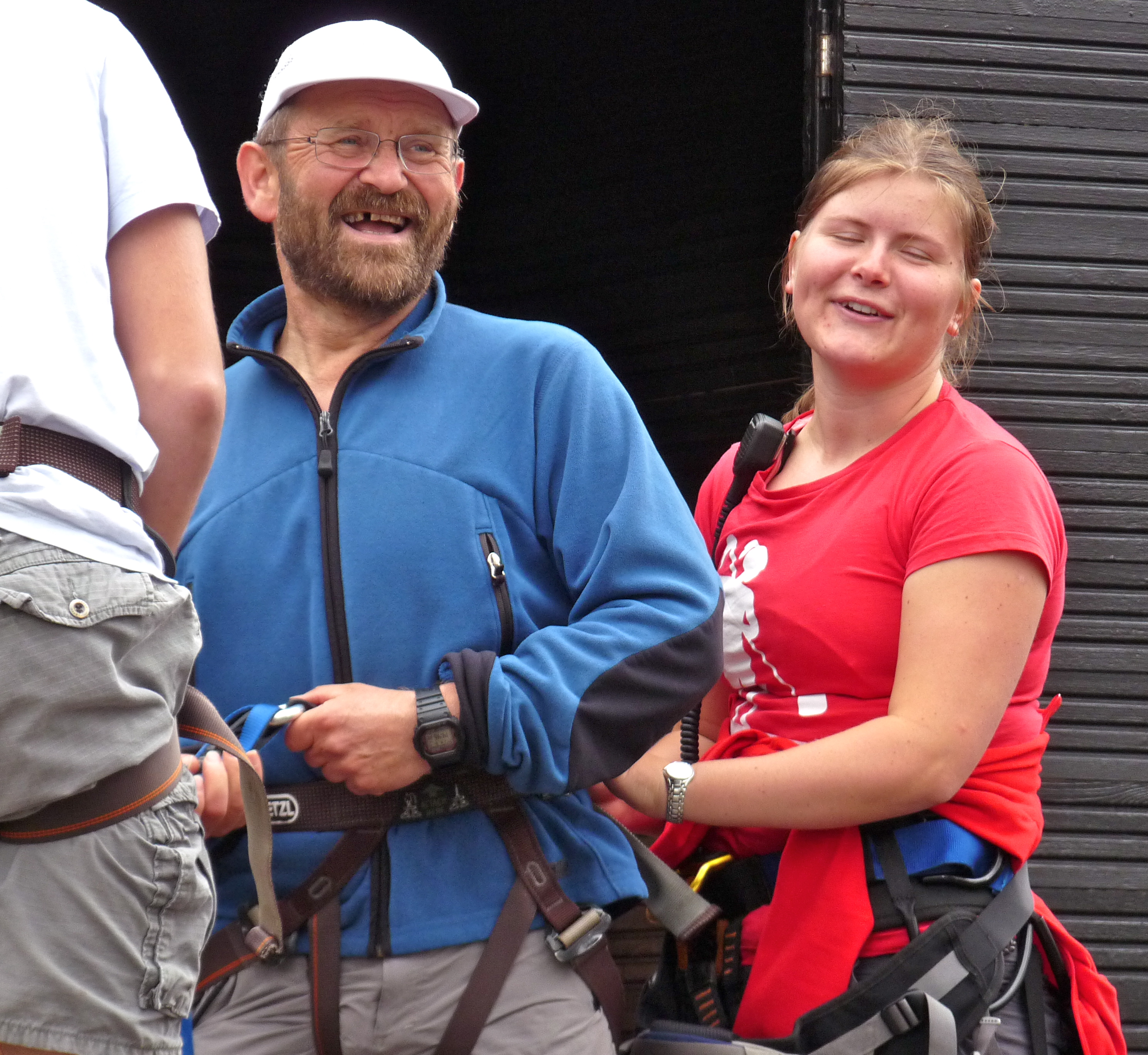 We hiked down a slightly different way, rejoined the main trail (all trails are marked with a red painted T). Peter and Svein took a short cut on the way down…. a zipline!