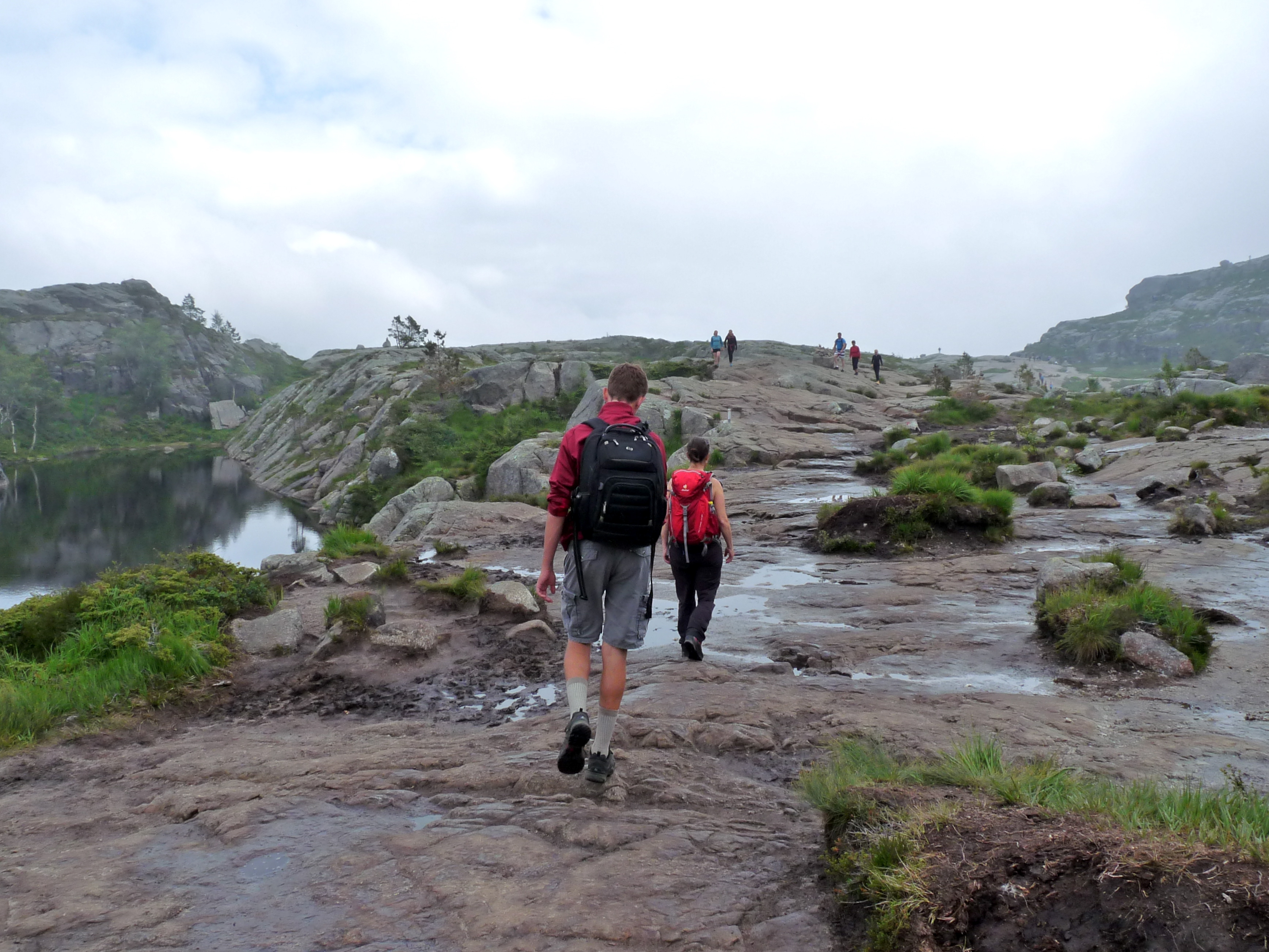 We arrived to the trailhead for Preikestolen at about 10:15, ready to hike. It was cloudy and misty and we were not sure what kind of view we might get, but decided to go for it anyway… us and a few hundred others! How often does one get to Norway?