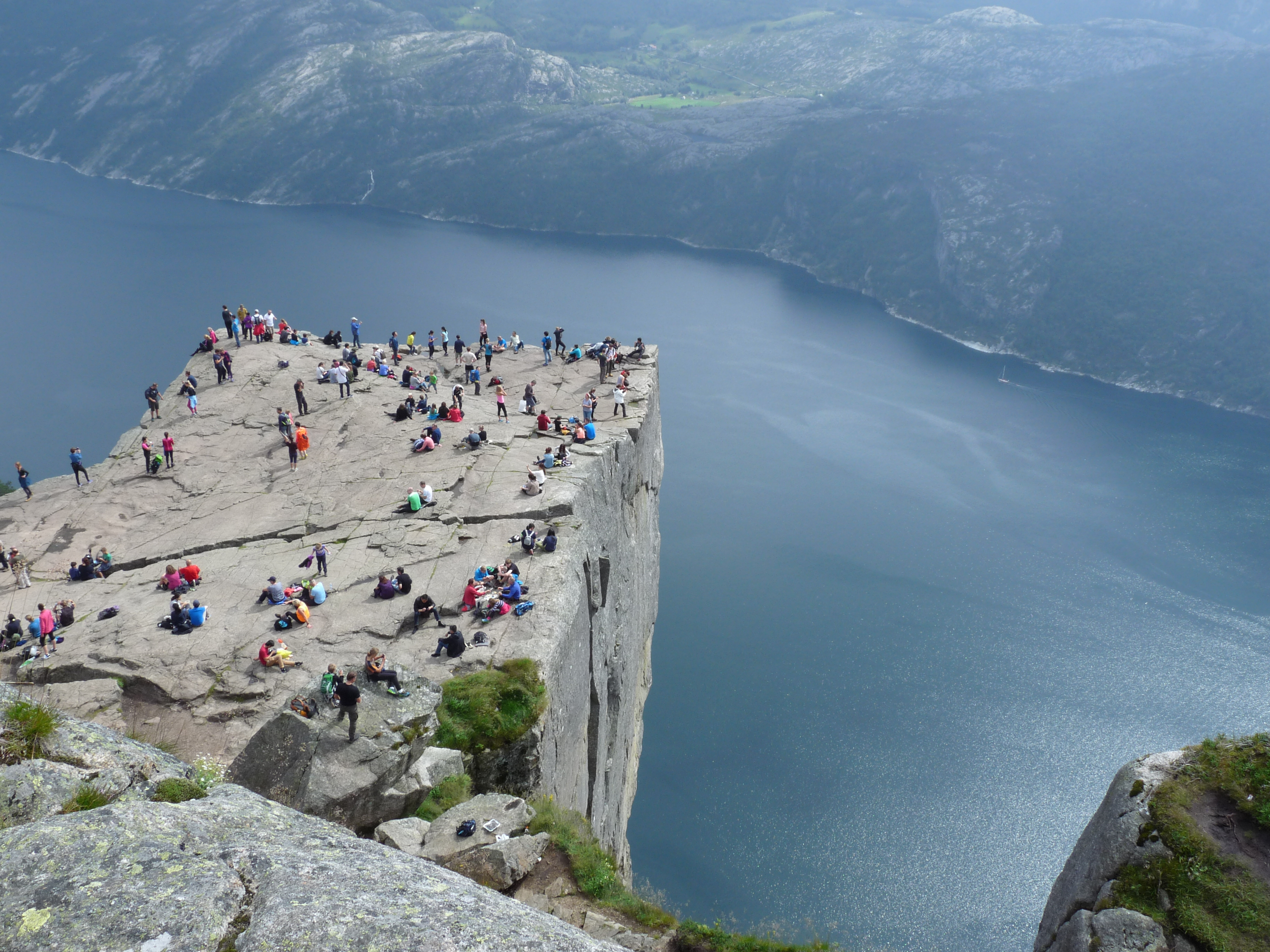 A couple things to note: 1. There are a LOT of people up there! 2. There is a huge fissure that runs diagonally across the rock; one day, after a few (hundred? thousand?) more incidents of expanding ice, this thing is going to break off and tumble spectacularly into the Lysefjord. A real treat for all the cruise ships that sail beneath!