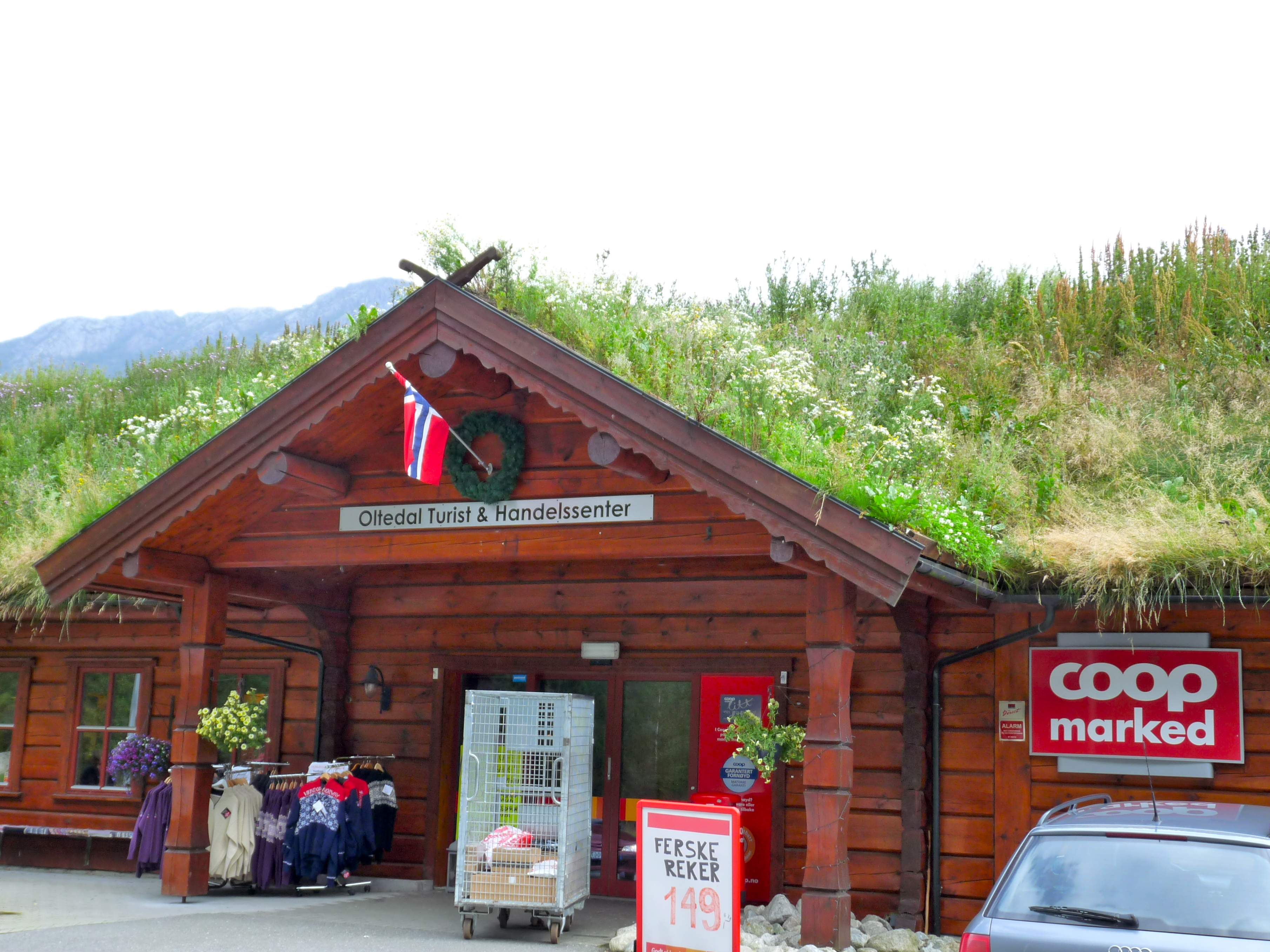 We stopped at the Coop to stock up on some groceries for the next few meals… typical, grass-covered buildings.