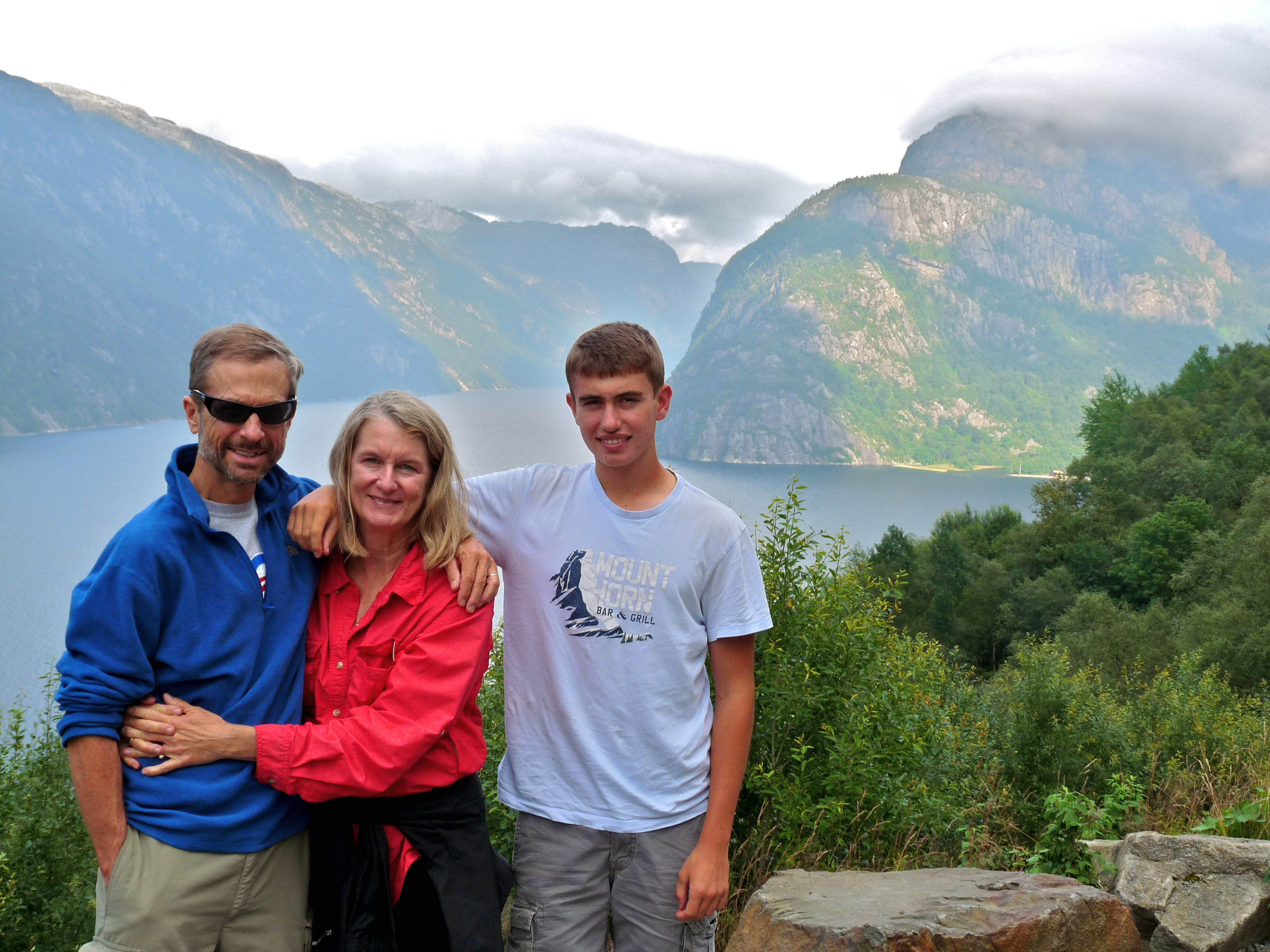 This was going to be a hike-to-Preikestolen day–considered by most to be the premiere Norwegian tourist attraction. We decided we’d stay the night at Leslie and Svein’s cabin–about an hour and a half from their home in Sola–so we gathered a sack of clothes and sundries for an overnight.