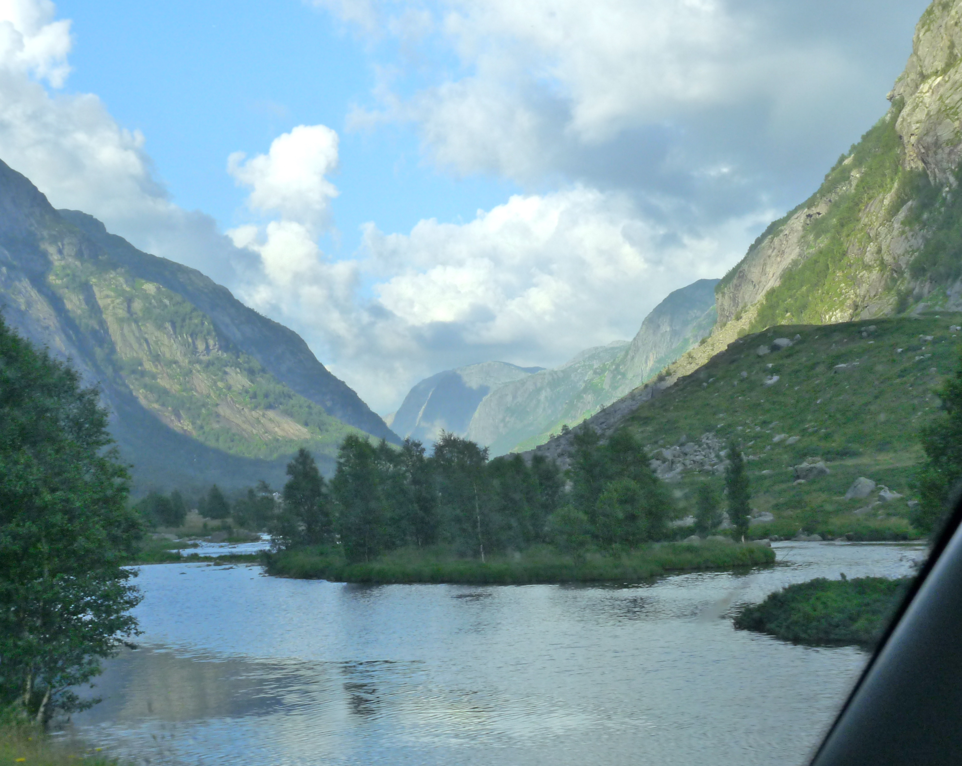 And then drove along some gorgeous, typical Norwegian country roads, up a valley whose name I’ve forgotten, to get to Svein and Leslie’s new cabin.