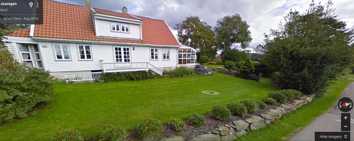 You think, really?, five minutes from the airport?, can’t be very nice… but it doesn’t work that way in Norway. They live on rolling farm and grazing land that abuts the Hafrsfjord. It’s property that has been in Svein’s family forever with an ancient farmhouse they thoroughly renovated about twenty years ago. Here’s a shot of the front of the house I grabbed off Google street-view:
