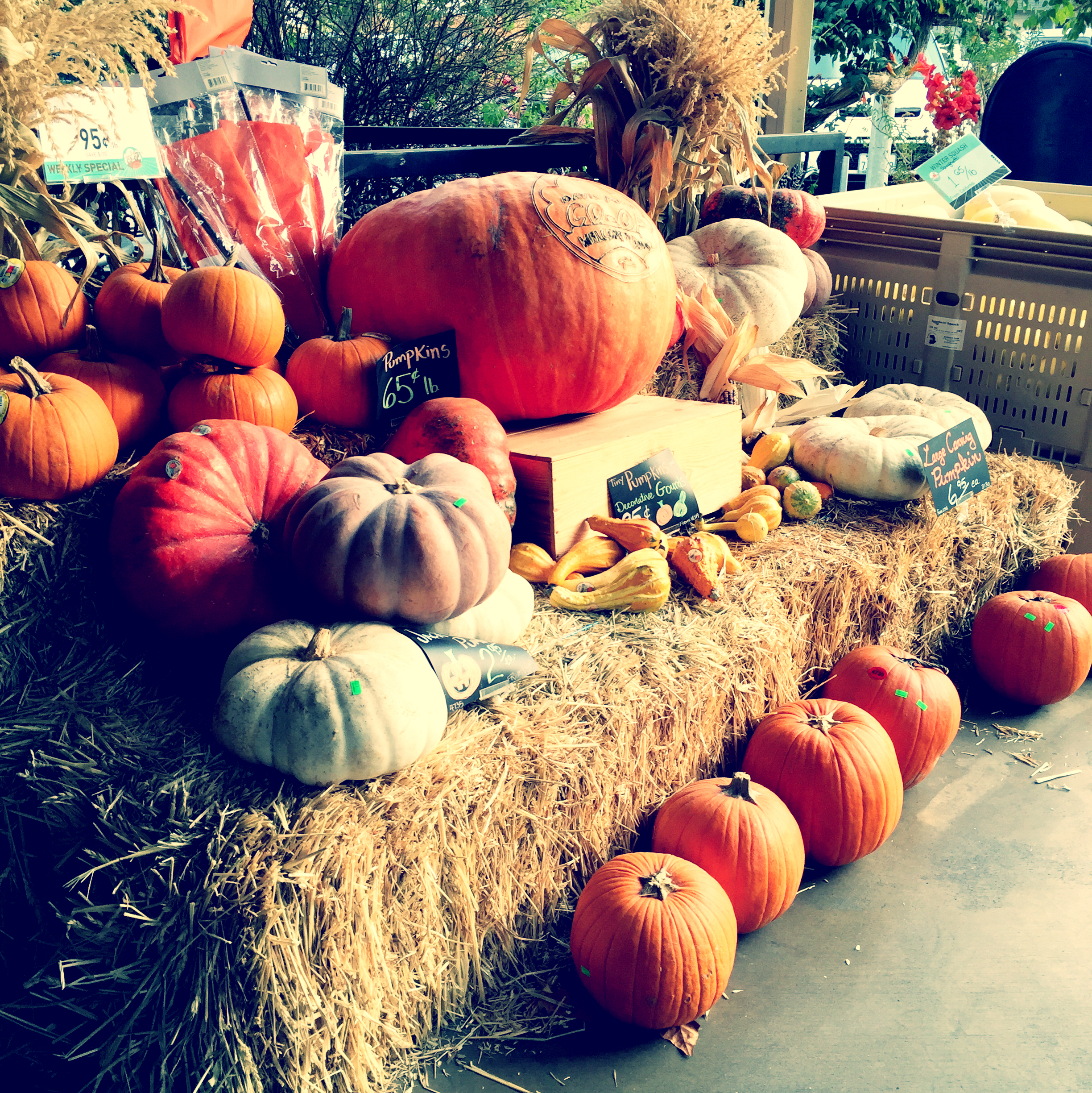 Feeling all warm and un-cynical–a nice way to feel–I headed out to my car, past their lovely fall display…