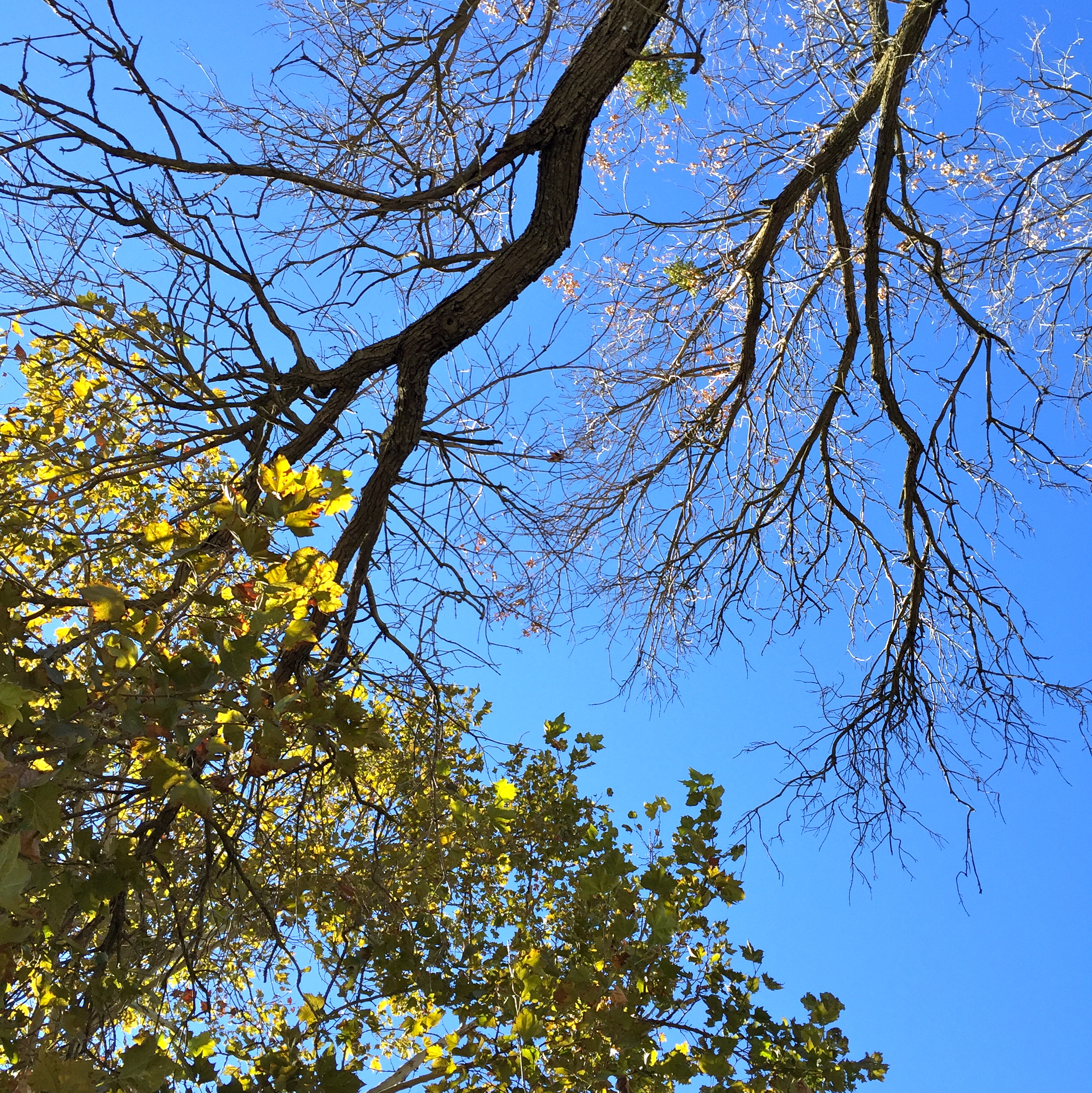 Still hitting the 80s hereabouts. Makes it a little confusing for trees ready to lose their leaves, but a few are giving it the old college try: