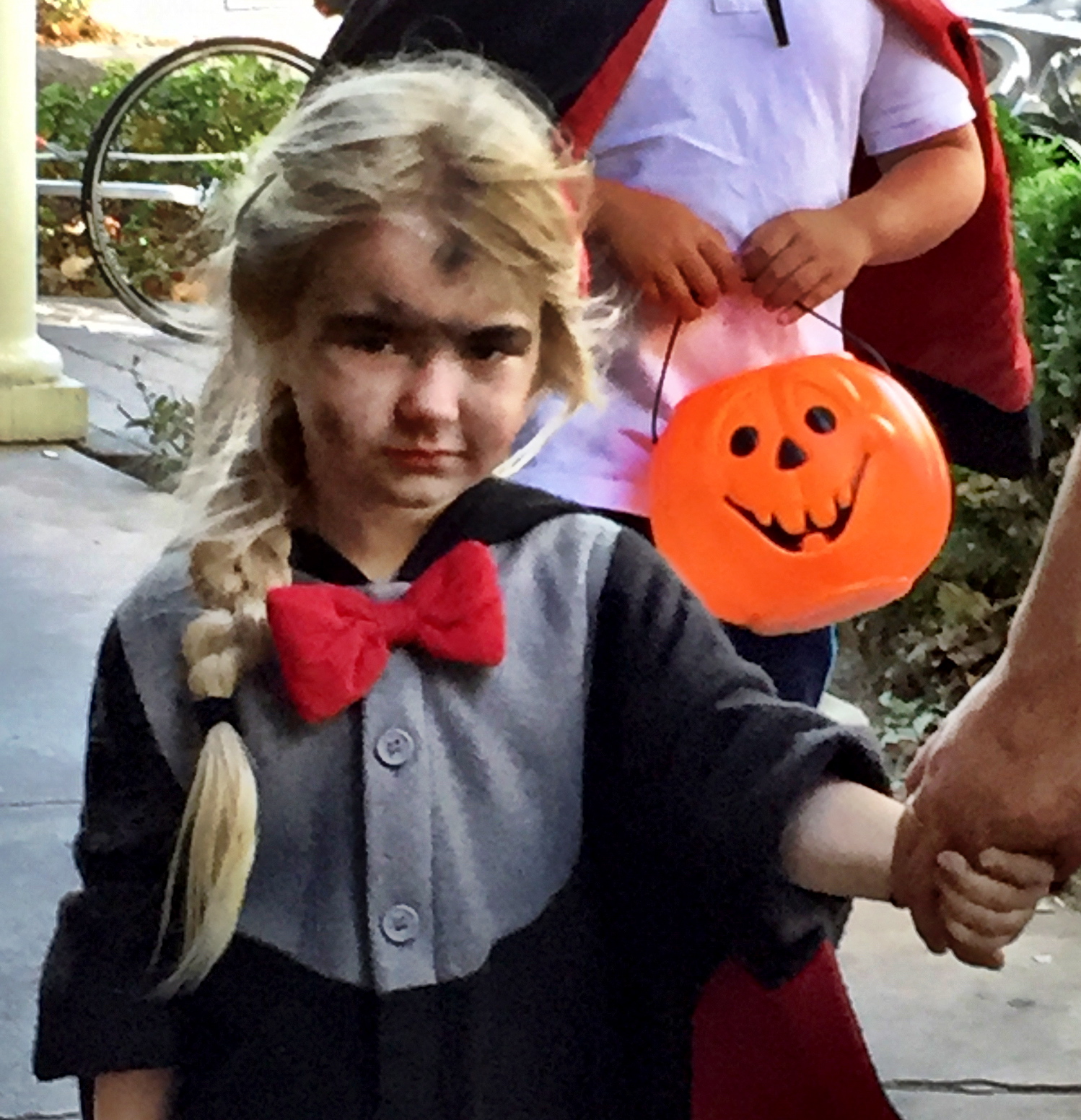 Had lunch downtown with Janet and Jim, and happened to sit outside at Bernardo’s where we had a front row seat to the annual Halloween candy give-away. Here are a few of the hundreds of costumed kids who paraded by: