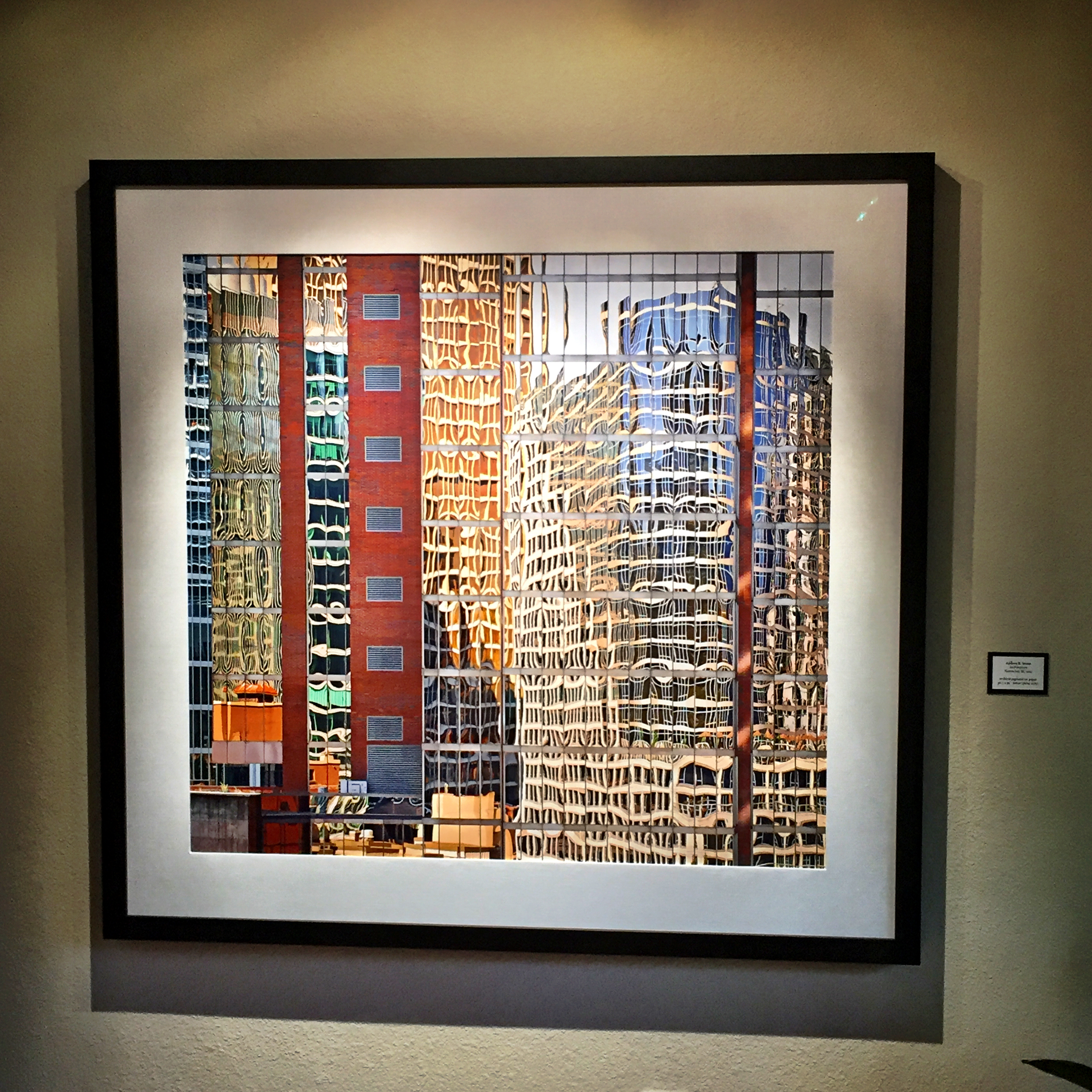 About four years ago, she discovered a subject she really loved–reflections of urban life. Literally reflections. And then honed what is now her signature perspective. What she does is take pictures of urban landscapes and architecture mostly through window reflections. “Conventional cityscapes melt away as buildings of steel and glass morph into canvases, reflections become paint…and the camera becomes the brush.”