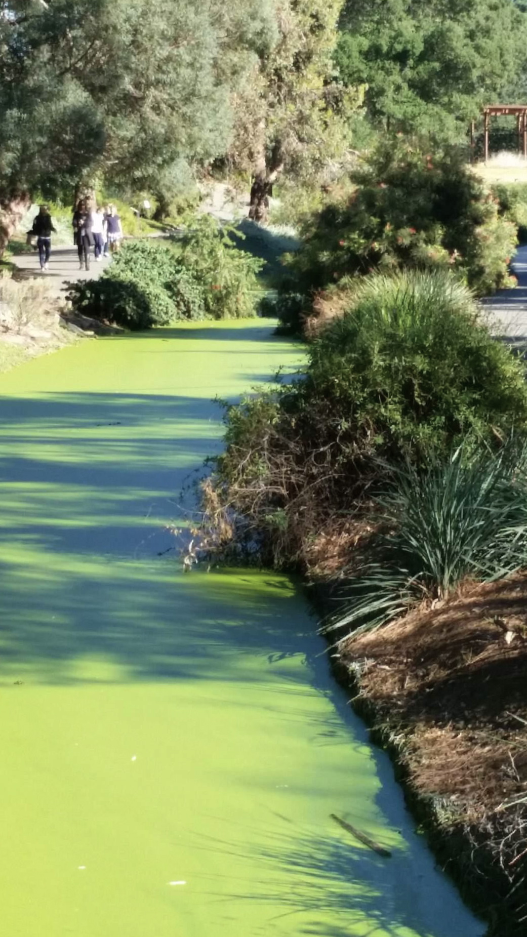 And oh what the drought hath wrought. I think some of this is seasonal, some the result of generally poor flow and aeration, and some from lack of sufficient rainfall. I think. In any case, it’s gross. I think fish and other creek life is suffocating; we saw a guy collecting dead fish in a net. I don’t know where the skimming boats are, and I don’t know how concerned the scientists are, but I was freaked out by it.