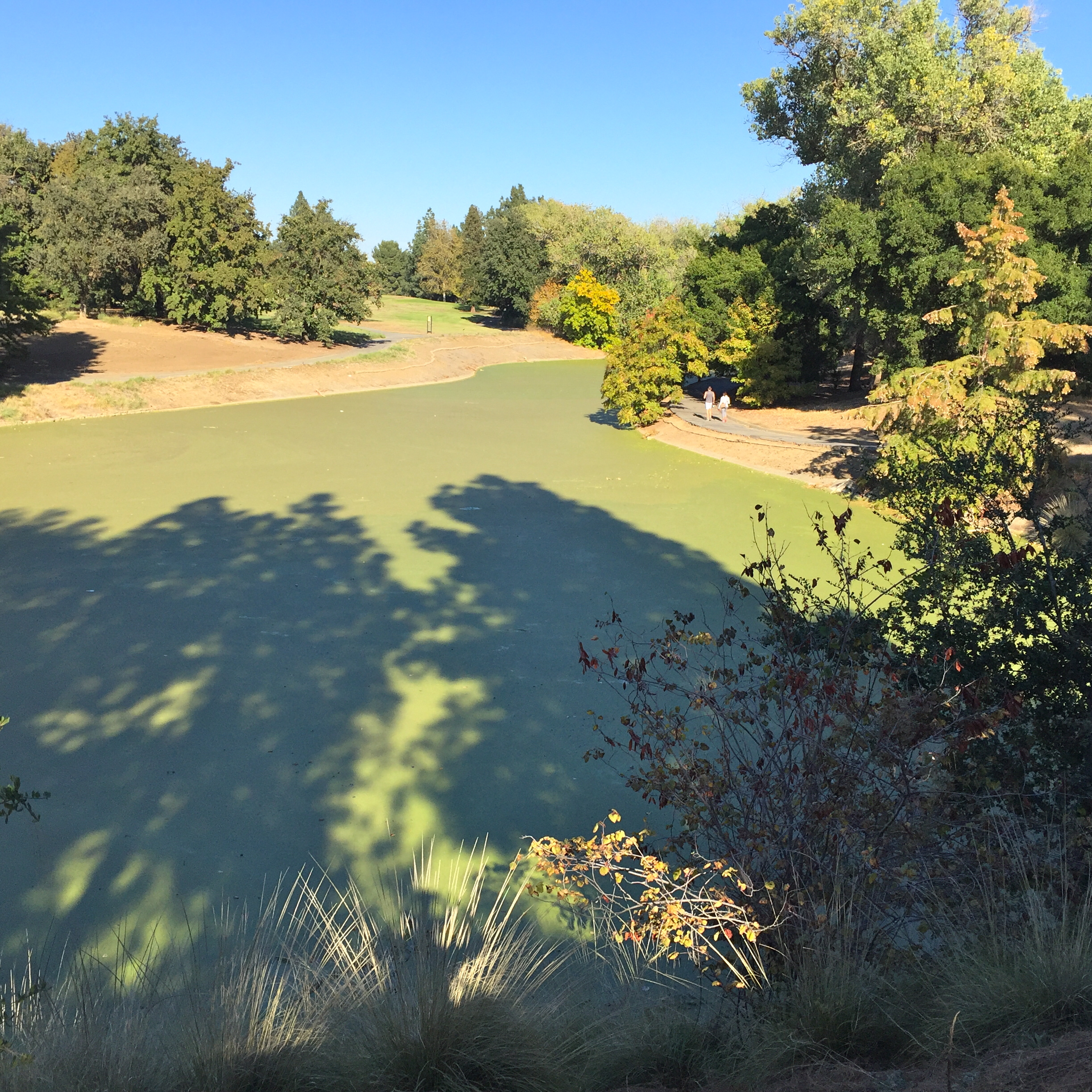 It’s true that in all my years of taking regular walks around the 3 1/2 mile loop, I’ve never seen the green stuff quite like this, and it’s true we are in a four–and perhaps counting–year drought, and there would certainly seem to be a relationship… but maybe not.