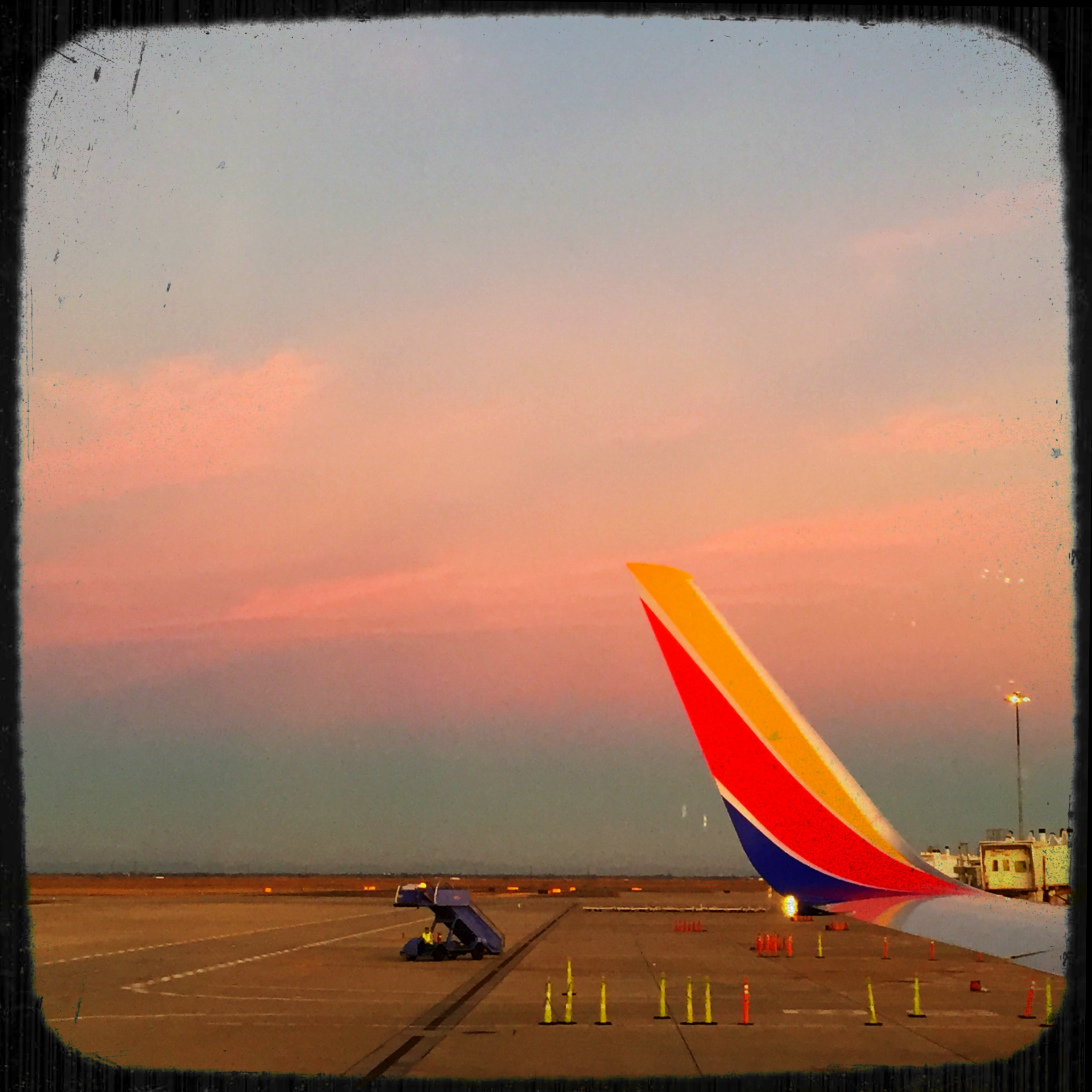 Being mid November, my late afternoon/early evening departure is now a sunset flight. Here’s a shot of twilight on the tarmac: