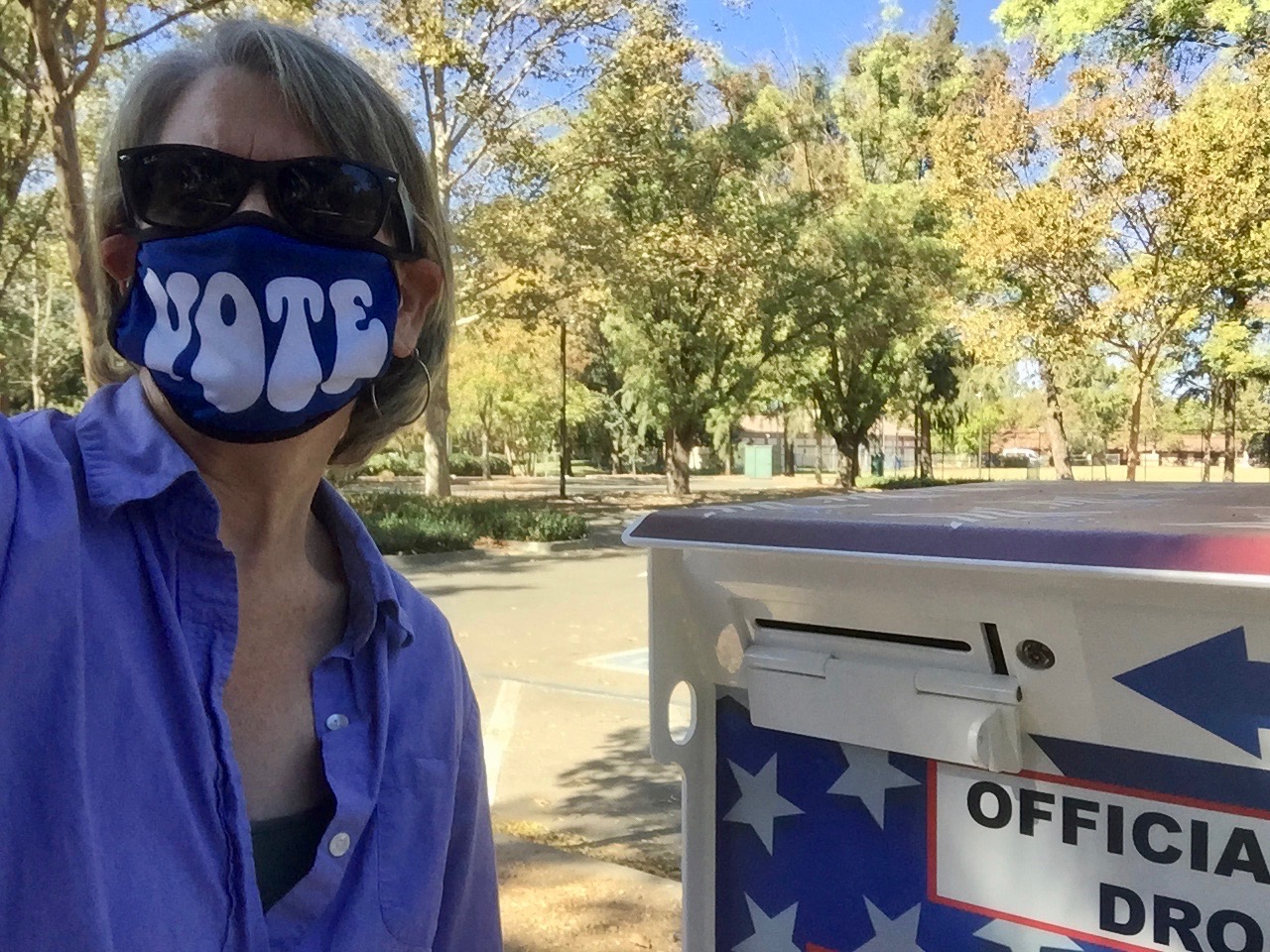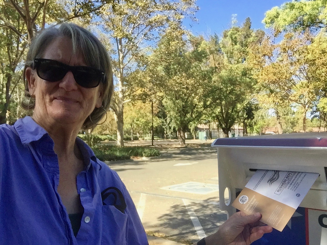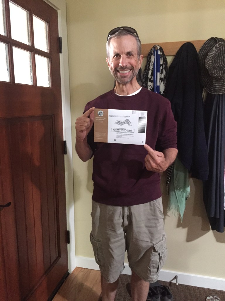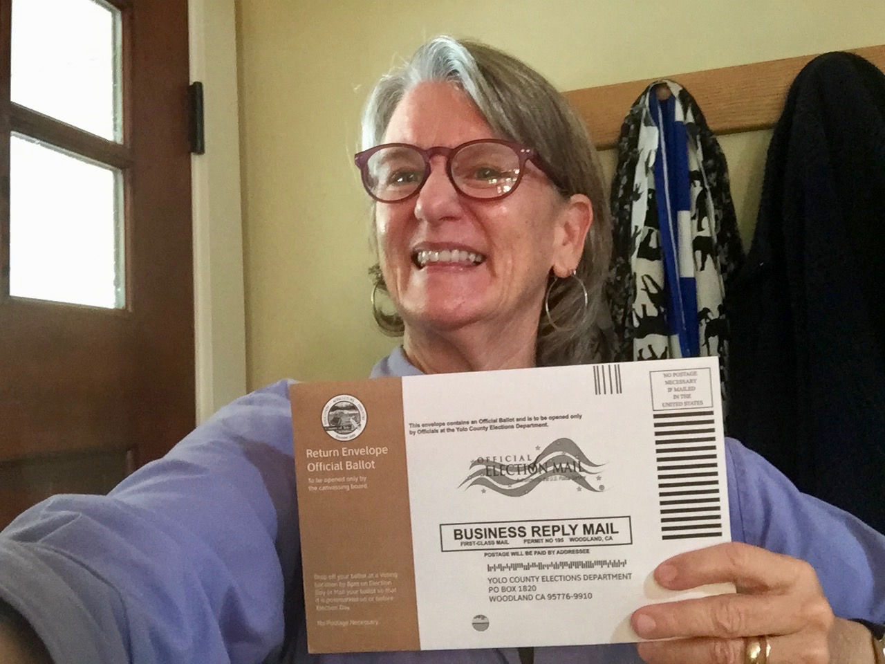 California sent out its ballots — one to every single registered voter in the state — on Monday. Here’s Jim on Wednesday, getting ready to head across the street to City Hall to drop his off in the Yolo County Elections Office Drop Box: