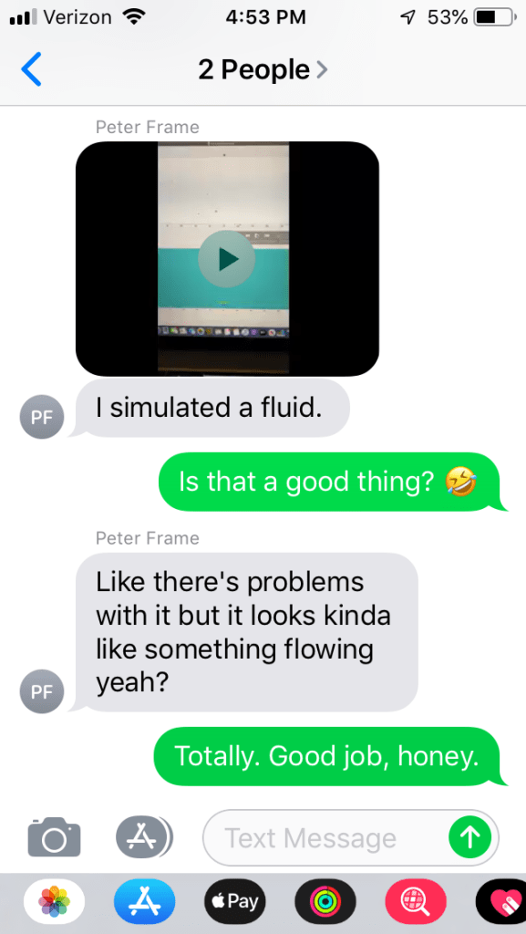 And it DID look like a fluid (the above is not clickable, sorry), and it was really cool! Clearly he was pleased with the result. So maybe I should say, “If it flows like a fluid…. ” (it is a fluid!)
