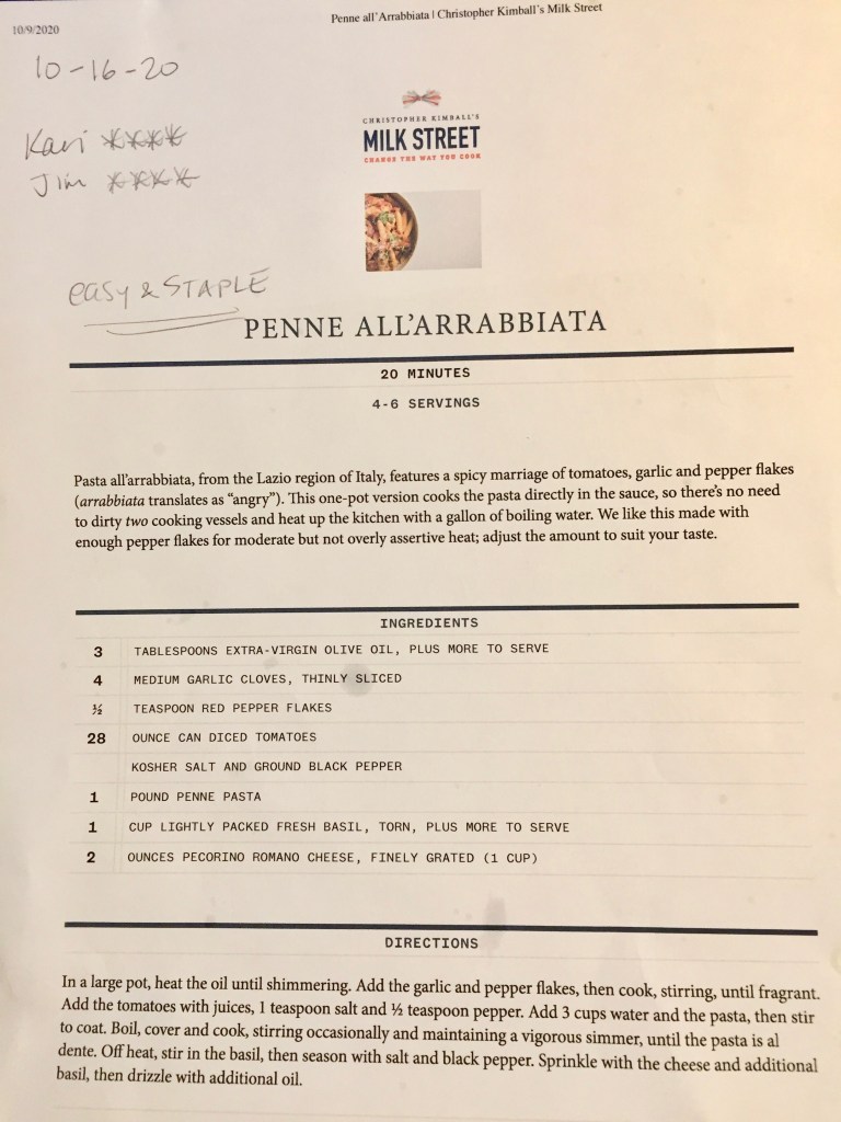 Anyway… I’m cooking NOW. Quite a bit during this pandemic thing. And tonight made Penne All-arrabbiata.