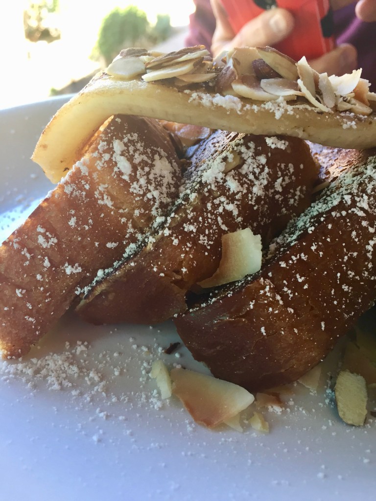 Jim and I have resumed Sunday brunches at Bernardo’s. Did I mention that last week? This was our second time, since mid-March. Jim reverted right back to his usual.. the french toast. I liked the bendy banana, so took this pic.