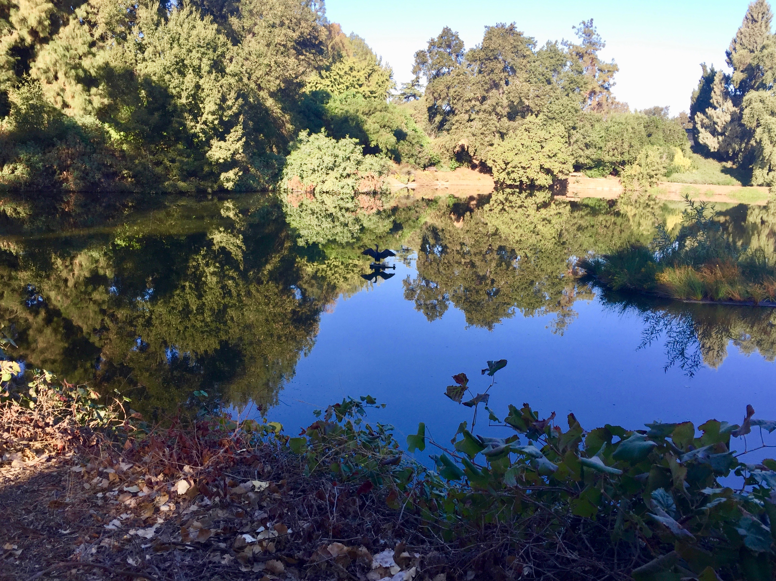There is this cormorant, who we think is drying its wings (look carefully). He/she stands on this floating hunk of wood pretty much all the time.