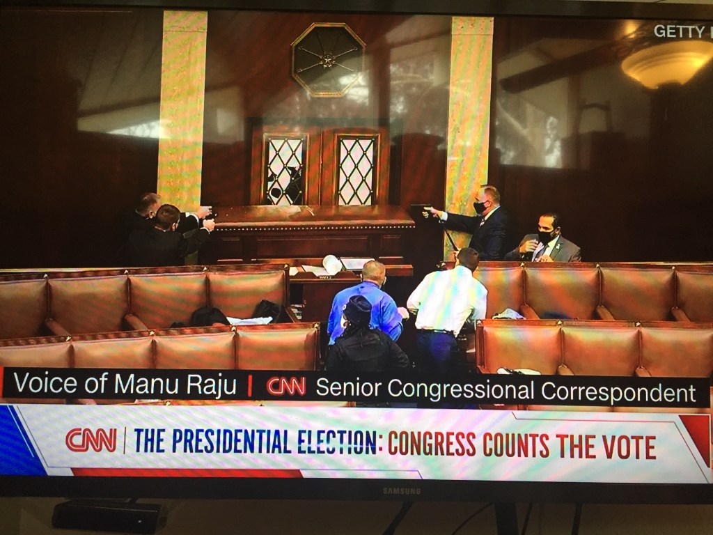 The rest of the day’s been a shocking display of thuggery and lawlessness. I won’t go into all the detail, but I spent the entire day watching it unfold, stunned and scared. Some tears, lots of fear.. it felt so out of control and it was unclear how far this would go. The capitol police were entirely overwhelmed and unequipped to handle the mobs (which is itself shocking as Trump had broadcast his intentions for weeks), so the insurrectionists (we call them now) breached the Capitol. They knocked down barricades, bust through perimeter buffer zones, jammed the steps on all four sides of the building, climbed exterior walls, they even broke windows and climbed in.