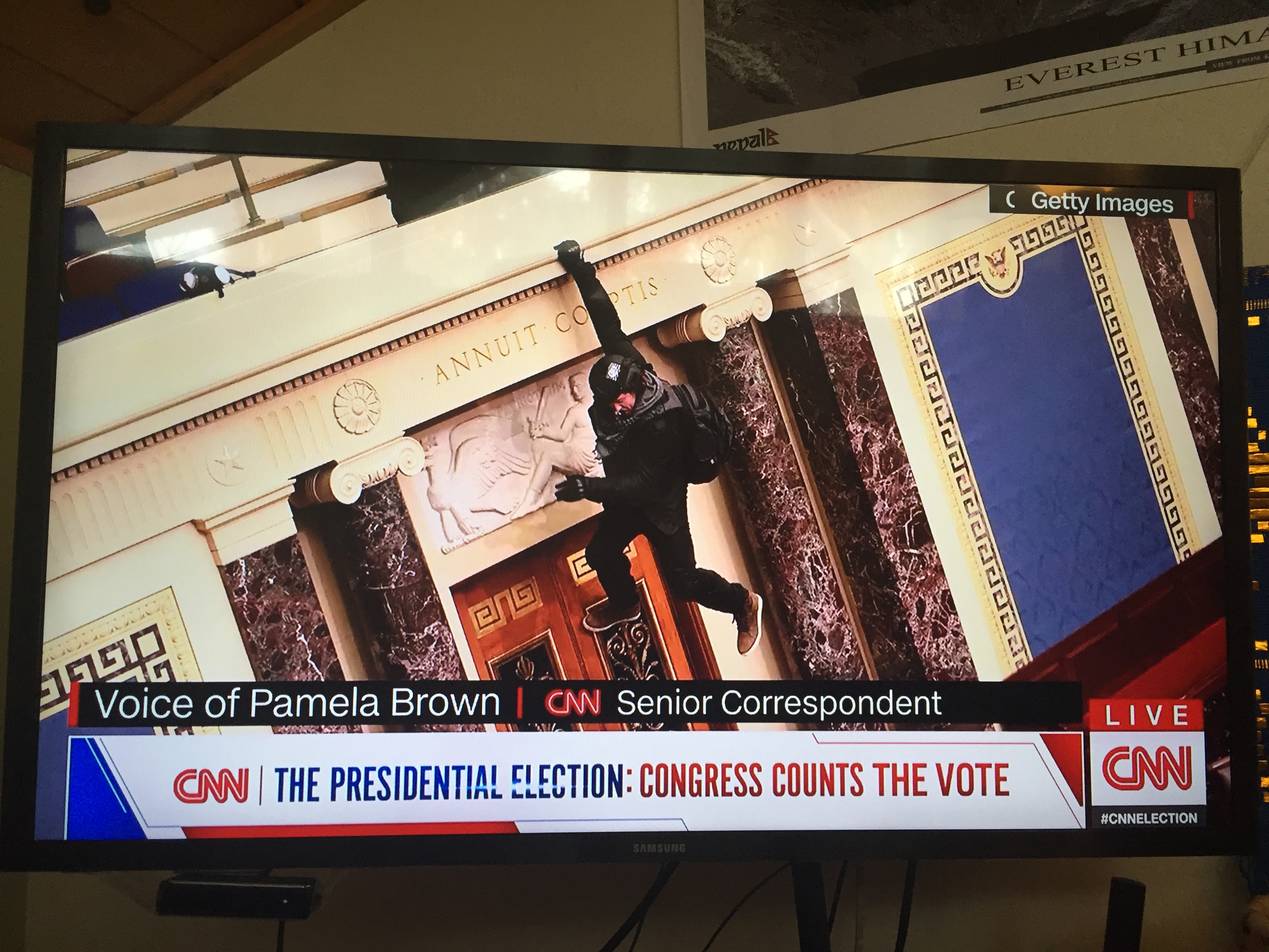 Then girded myself for the formal process of Congress’s affirming of the Electoral College voting certificates. People were nervous because Trump had decided this was the day he was going to mount a protest… to call all his supporters to Washington to demonstrate their disagreement with the election outcome. Blah blah blah. Ridiculous and reckless and every other stupid word to describe him, his plan, his rally. He’s just so incredibly irresponsible and pathetic. Futile as his whining is, there was worry. Thousands of misinformed, disgruntled and agitated yahoos descending on Washington = not a good thing.